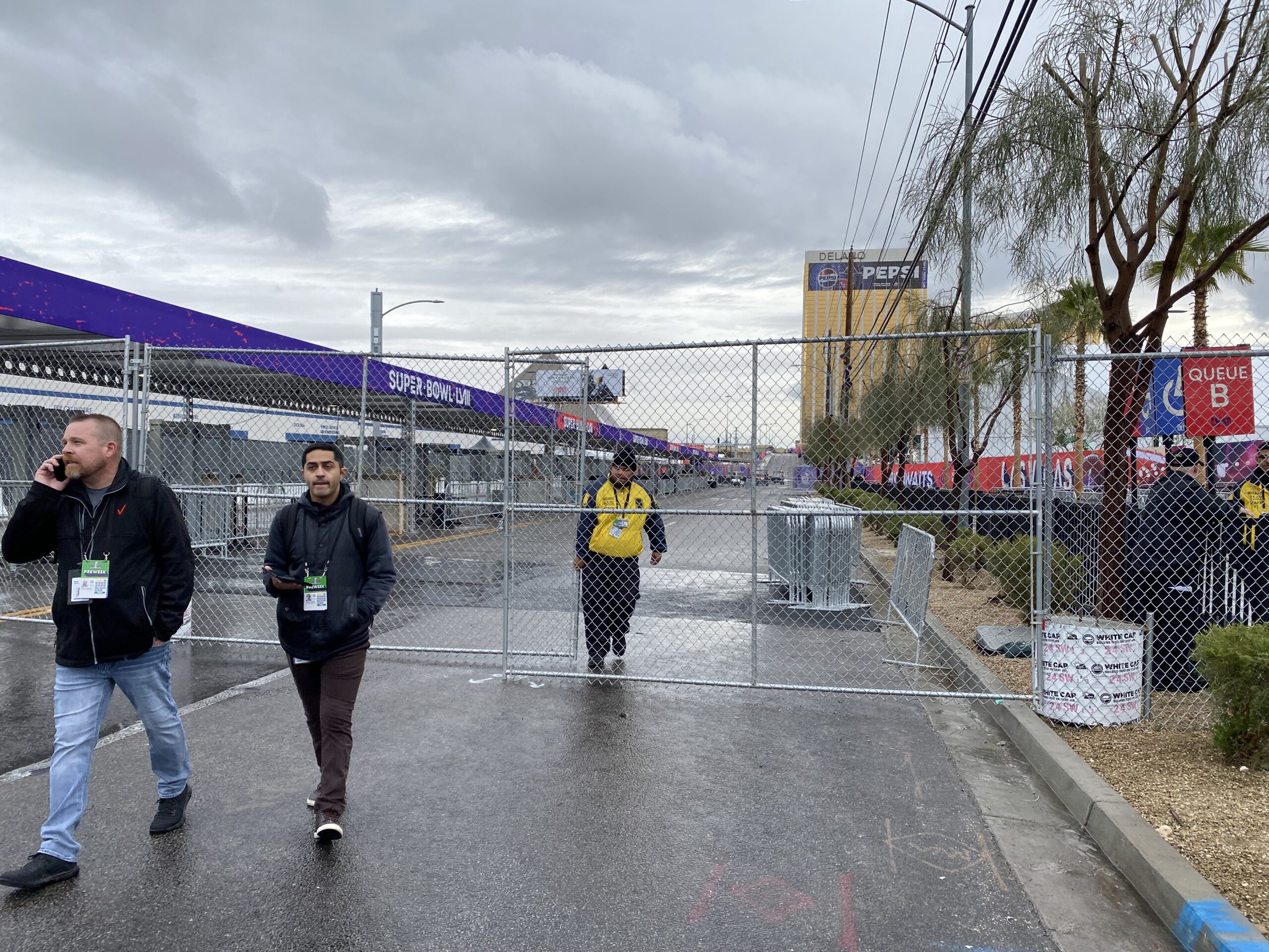 The league has shut down Hacienda Avenue’s sidewalk to the public and the road that links Mandalay Bay/Strip and Allegiant Stadium is now officially inside the stadium campus and only credentialed workers will have access to Hacienda.