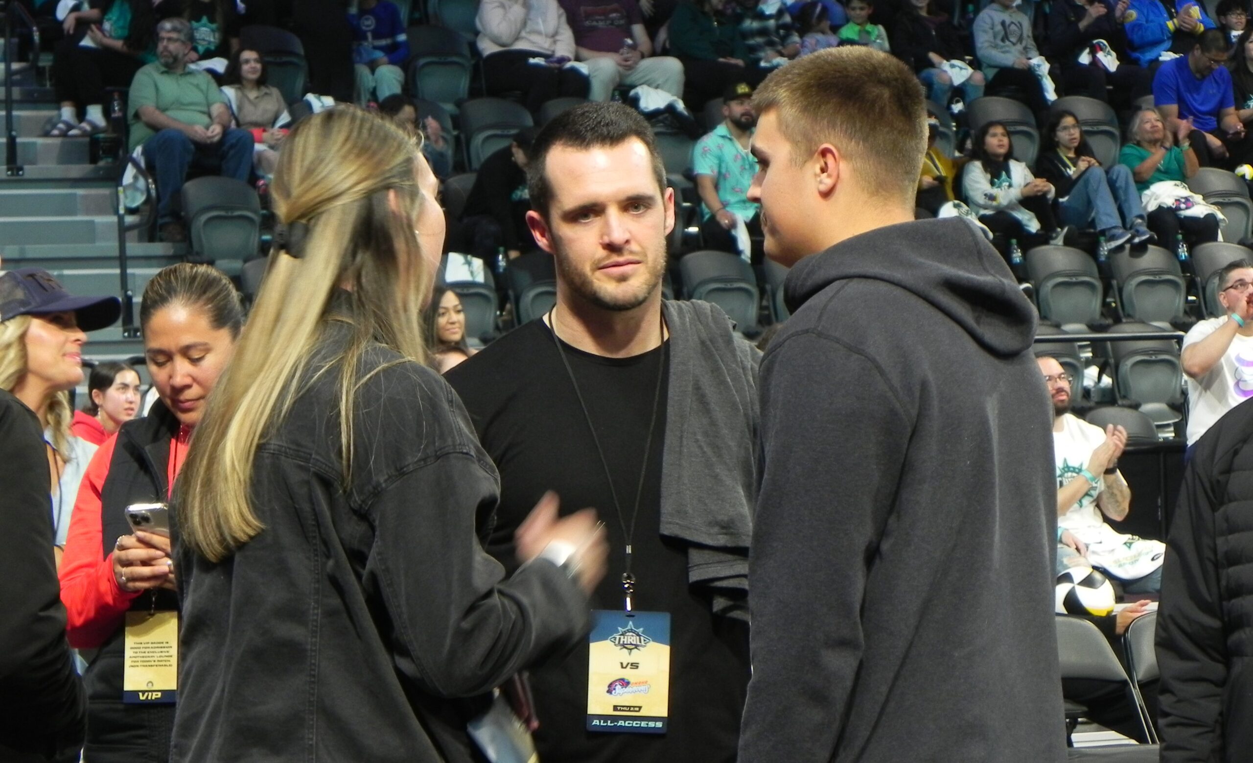 The crowd of nearly 4,000 included two NFL quarterbacks — former Raiders QB Derek Carr and current Raiders quarterback Aidan O’Connell. Several Las Vegas Aces players attended, too.