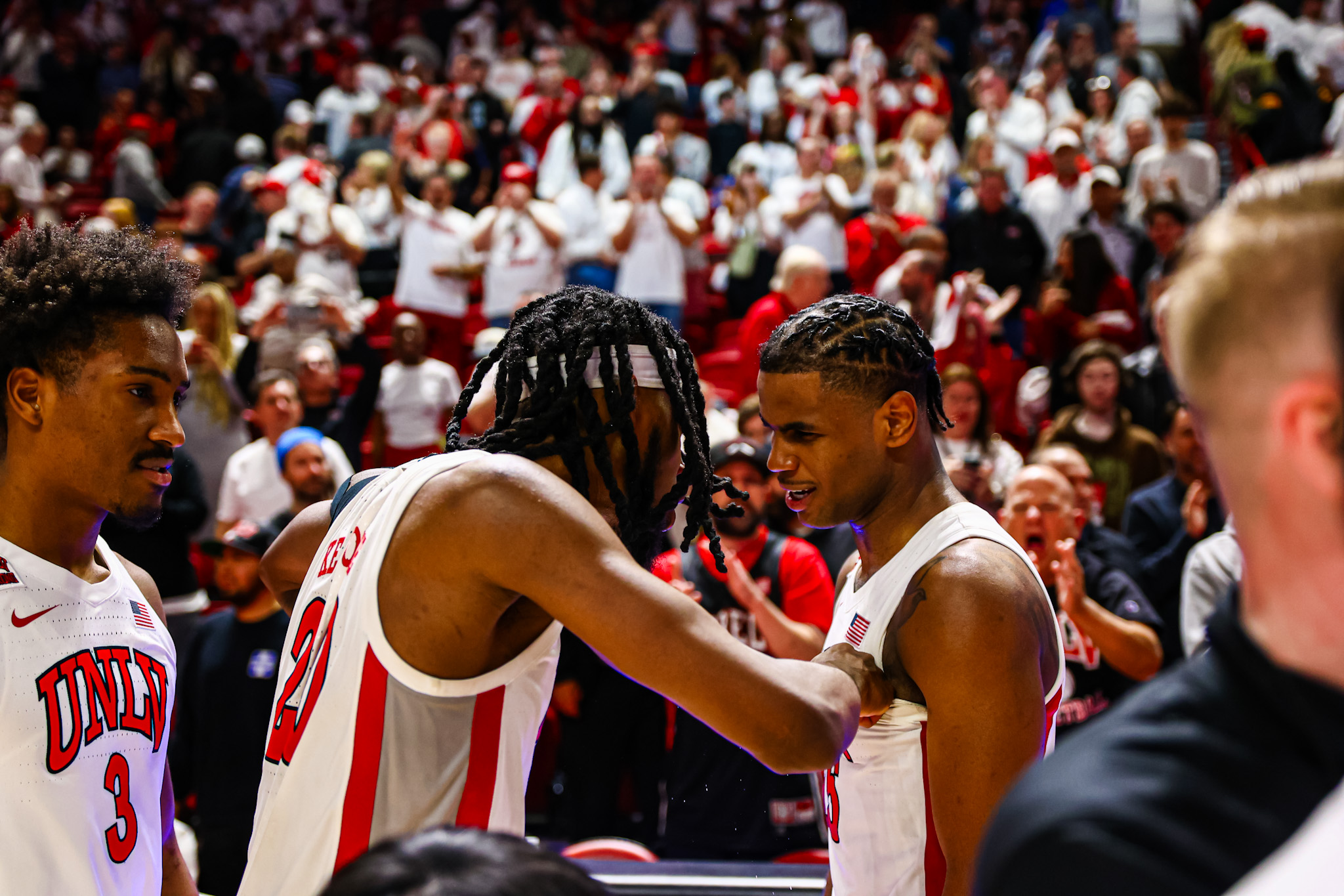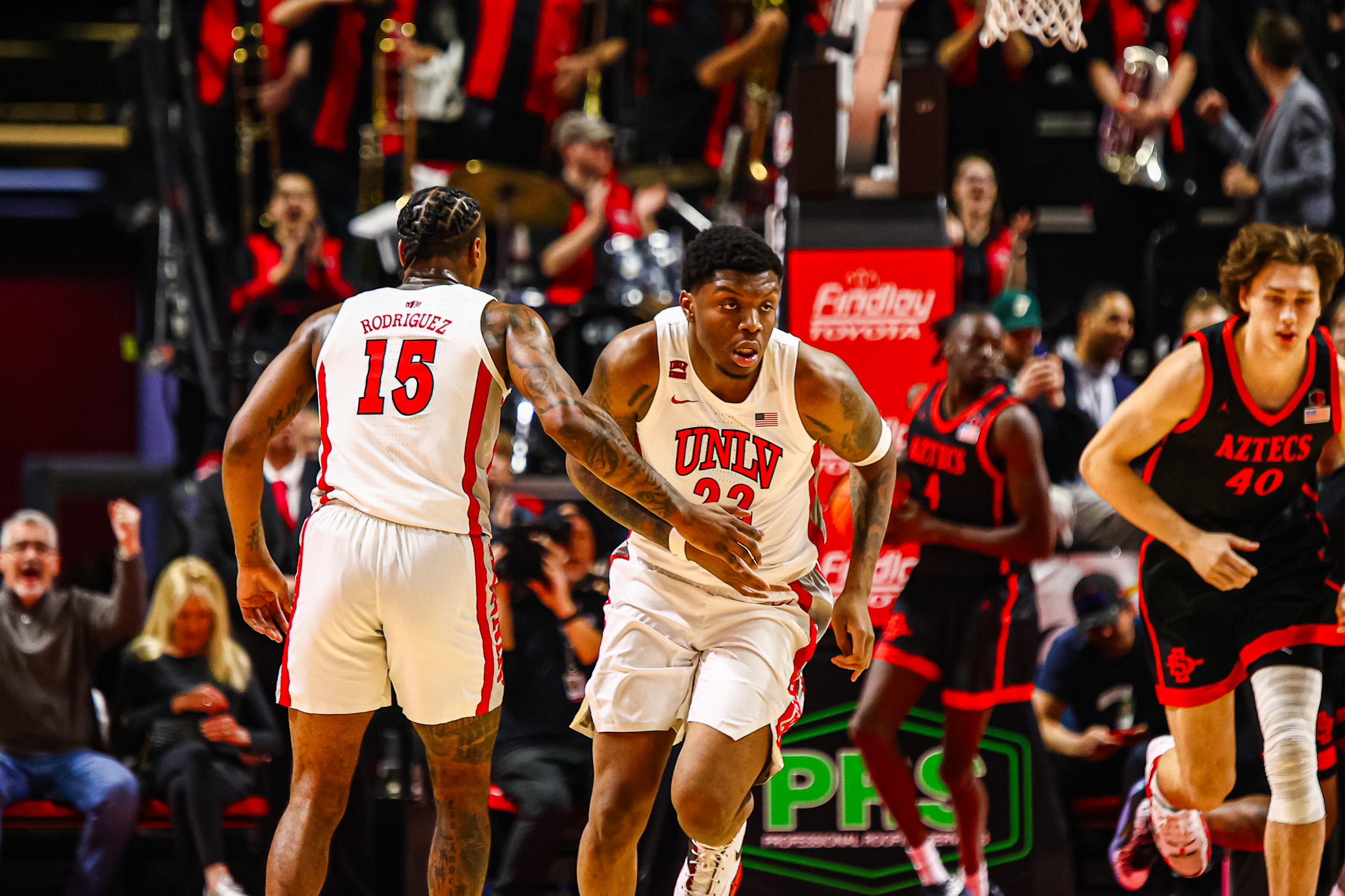 The crowd exploded when Thomas sank a three-point shot from beyond the arc to give the Runnin’ Rebels a 56-49 lead with about four minutes to go in regulation. It was a bruising Mountain West battle between teams that entered the game with identical 11-5 league records. This was a San Diego State team that lost to UConn in the NCAA national championship game, 76-59.