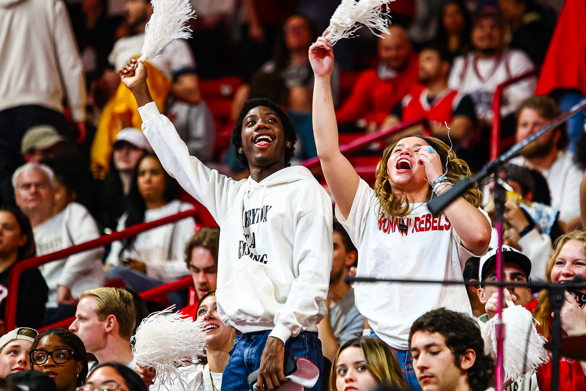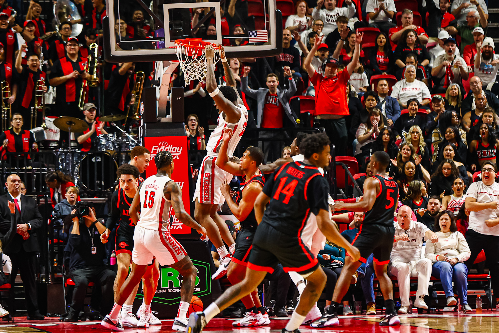 The energetic, feisty and loud crowd screamed their lungs out in a rugged, rock fight between the Runnin’ Rebels and a ranked San Diego State squad that lost in the national championship game during last year’s March Madness.