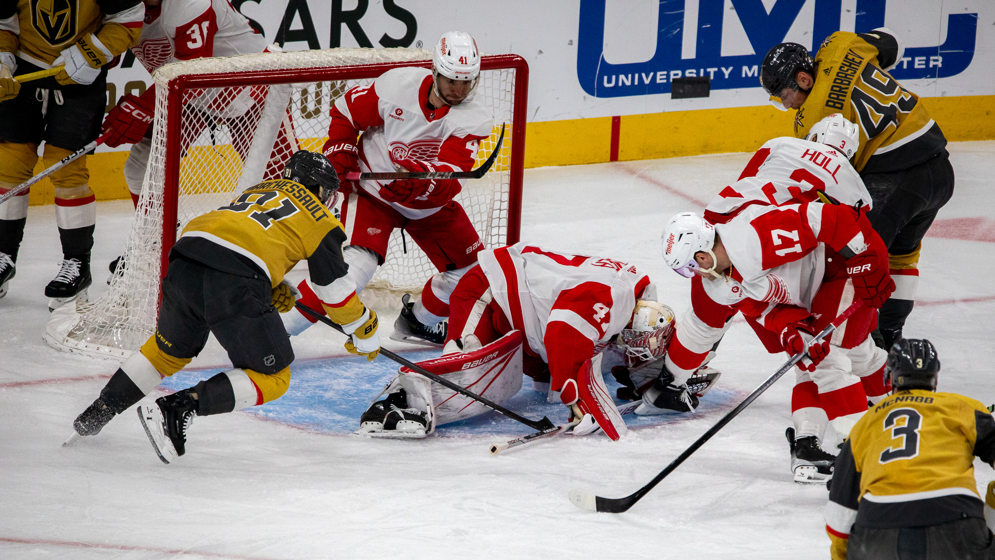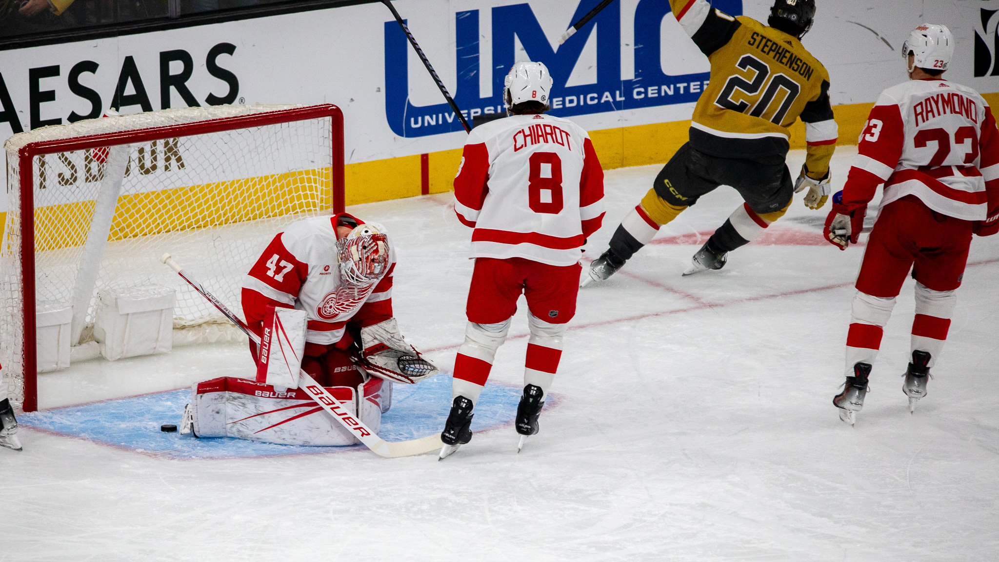 Detroit tied the game at two in the third period before Brayden McNabb scored his third of the season for a VGK 3-2 lead. Detroit countered with a goal and the game was tied at three apiece. Marchessault put the VGK ahead with 34th with only 2:44 to go in the third period. Marchessault then added an empty-net goal to seal the VGK win.