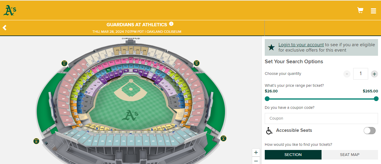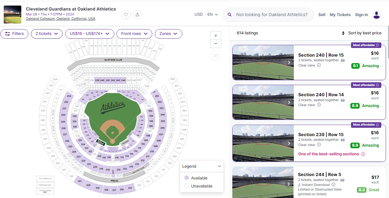 Tickets for the Athletics’ first home-opener since the news of the franchise’s decision to move to Las Vegas are quite affordable for the A’s-Cleveland Guardians game at the Coliseum Thursday evening.