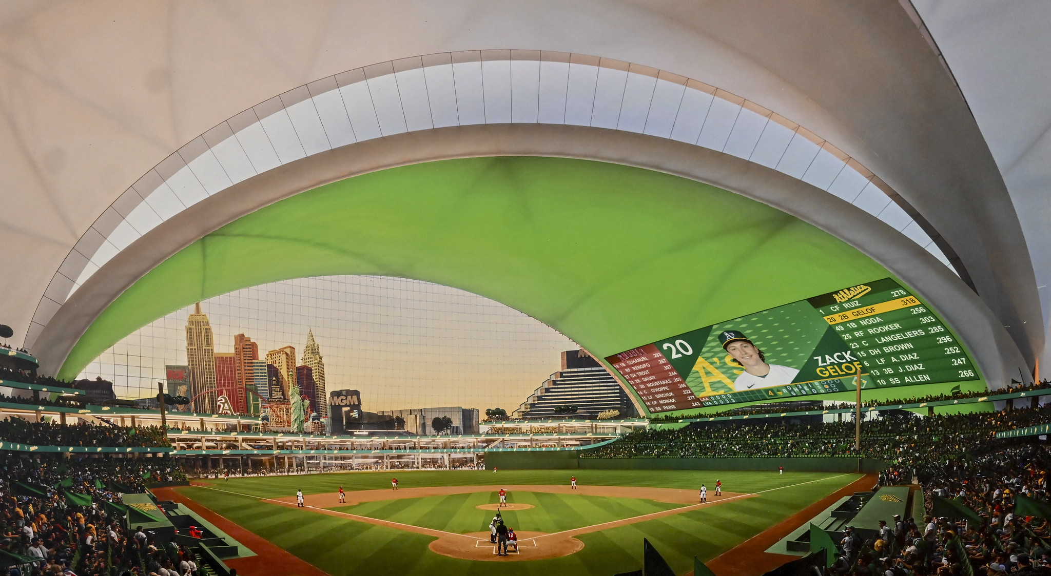 The A’s home-opener comes less than a month after the franchise revealed its drawings for a planned $1.5 billion, 33,000-seat stadium on the Strip that is scheduled to open for the MLB 2028 season. The domed venue is set to be built on nine acres on the 35-acre site at Tropicana Avenue and Las Vegas Boulevard.