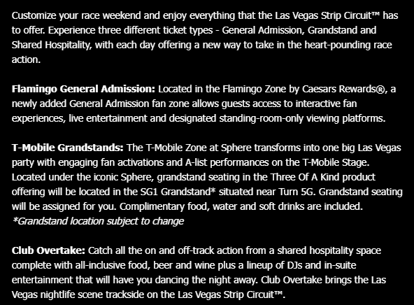 The Las Vegas Grand Prix is under local criticism from businesses and workers for hurting commerce and transportation over the way Formula 1 took over 3.8 miles of public roads in the Strip corridor in November. The grand prix emailed the most recent ticket deals Friday. Take a look.