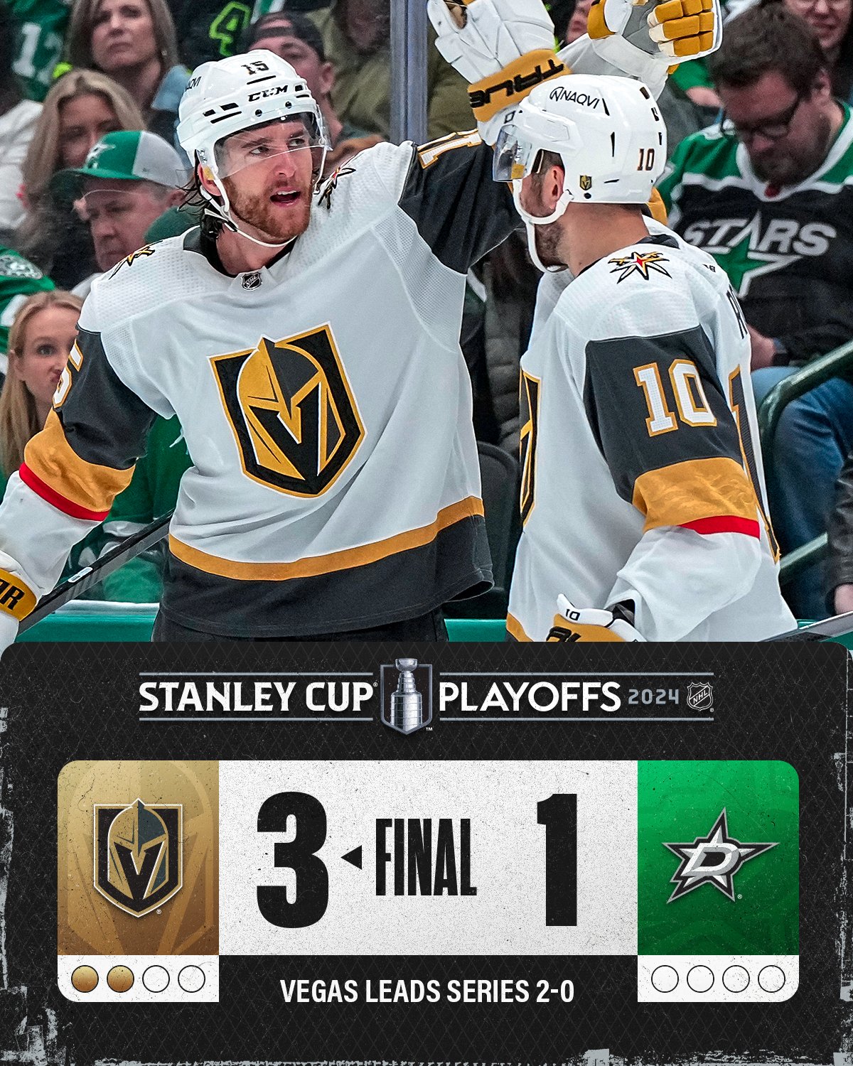 Golden Knights Sweep Both Games In Dallas To Take 2-0 Lead In Stanley Cup Playoffs First Round; Game 3 In Las Vegas Saturday