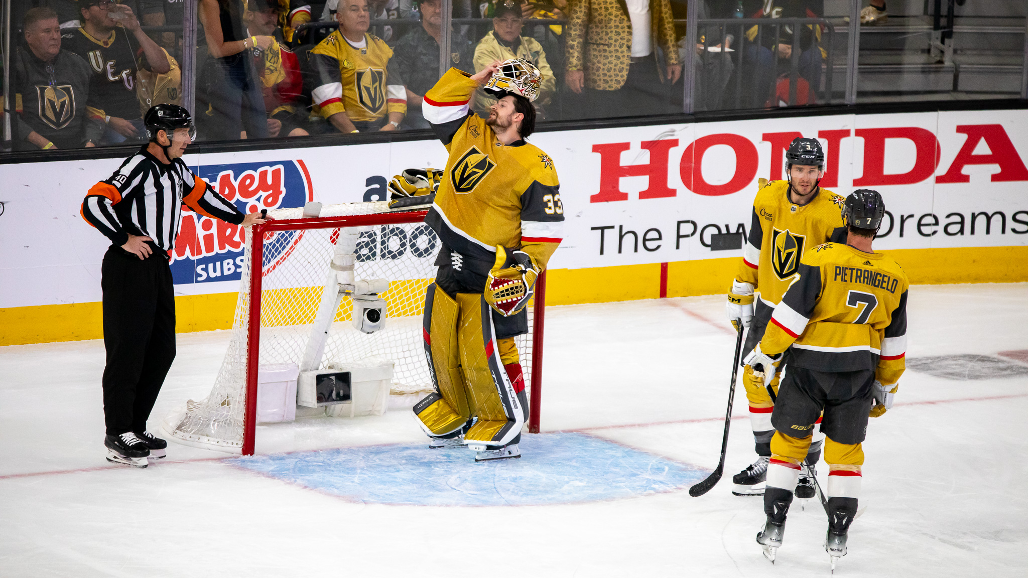 - On a crazy sequence with about three minutes left in the second period when Jonathan Marchessault hit the post and then Hill made a big save on the other end: “It’s playoff hockey. You’re almost just enjoying it.”