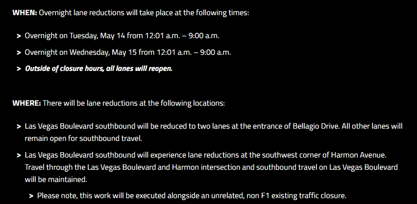 It’s remarkable that the race organizer is already closing lanes starting Sunday, yet Clark County will not release the F1 traffic report to the public.