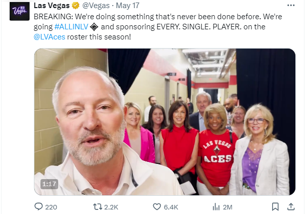 “The Las Vegas Convention and Visitors Authority made a sponsorship offer to each Las Vegas Aces player through her agent, in accordance with the rules of any sponsorship these athletes might accept, and consistent with our own long-standing sponsorship programs. We are proud to support the Las Vegas Aces, and to have them ‘just play and rep Vegas’ as ambassadors for the sports and entertainment capital of the world.”