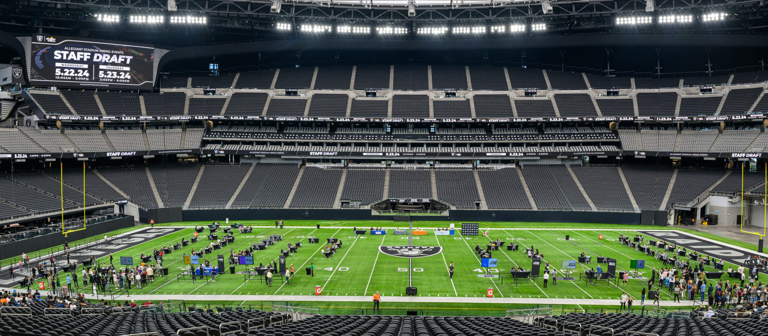 These are sports and concert event jobs at the four-year-old domed stadium, not full-time jobs. The organizations that were hiring were The Raider Image (retail), Silver and Black Hospitality (food/bev), ABM, Parking And Transportation Group Las Vegas (PATG), ASM Global (stadium manaer), and S.A.F.E Management.