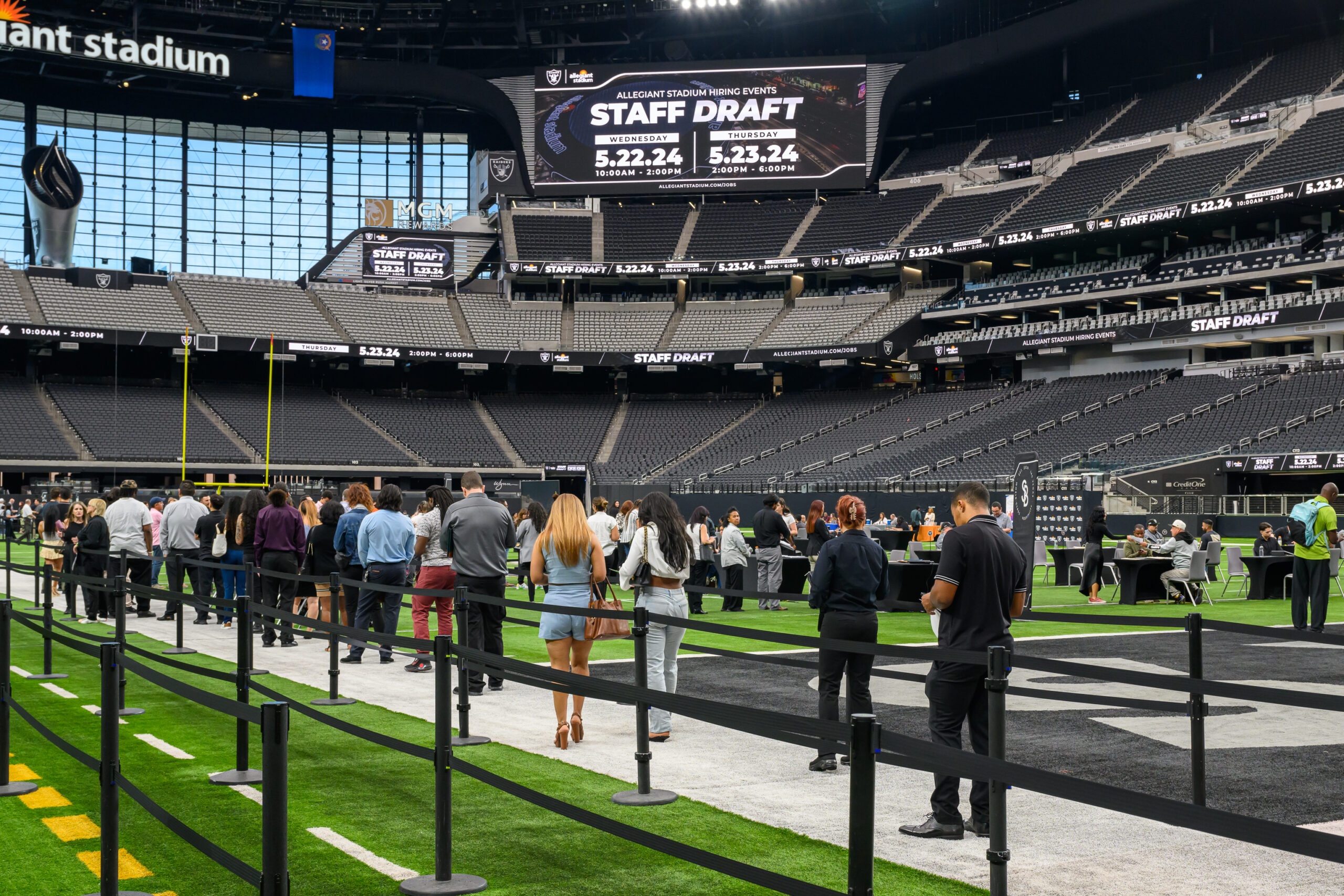 Allegiant Stadium Hiring Event Draws 2,400 Applicants During Two Days; Stadium Seeking Game Day Workers For Security, Cleaners, Ushers, Parking, Food/Bev
