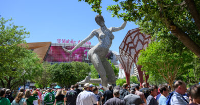 Clark’s running mate at Iowa — the Aces’ Kate Martin — also drew loud cheers when she entered the name off the bench. The Aces announced that Martin’s number 20 jersey had arrived for fans to purchase.