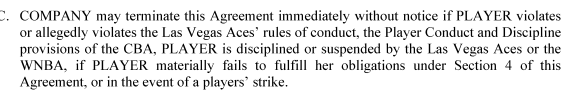Also, if an Aces player is disciplined, the agreement is off, too.