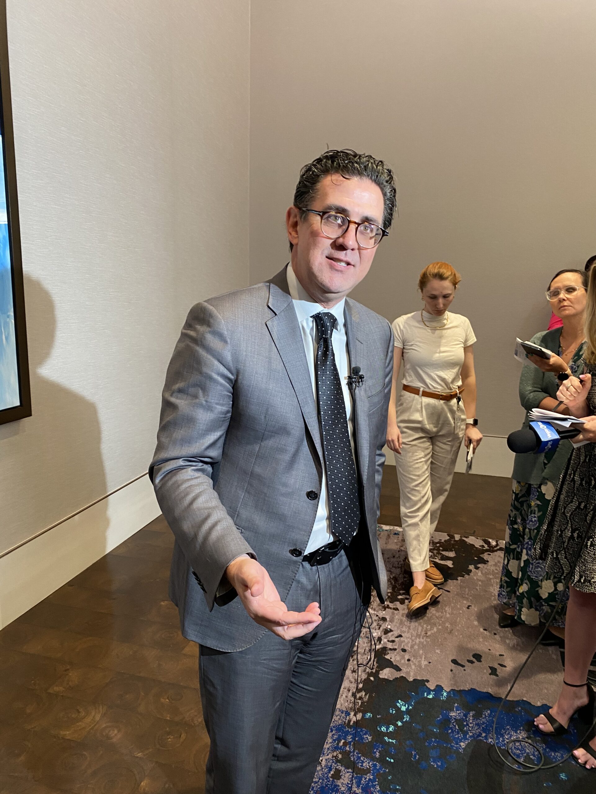 After the two-hour event with talks by Aguero; Clark C. Otley, MD., chief medical officer of Mayo Clinic Platform for Mayo Clinic; and Tony Vinciquerra, chairman and CEO of Sony Pictures Entertainment; Aguero met the media to chat.