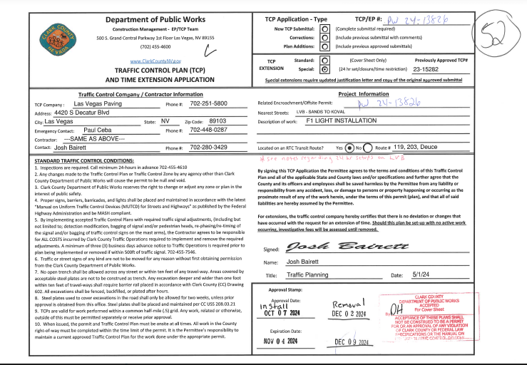 Clark County released records showing the traffic management plan. But the county withheld the Las Vegas Grand Prix’s original traffic plan document submitted May 1 and refused to allow the public to see how the county shaped the final traffic plan.