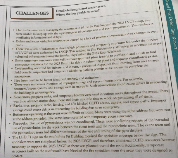 This is just one page of the debriefing report, a mere example: