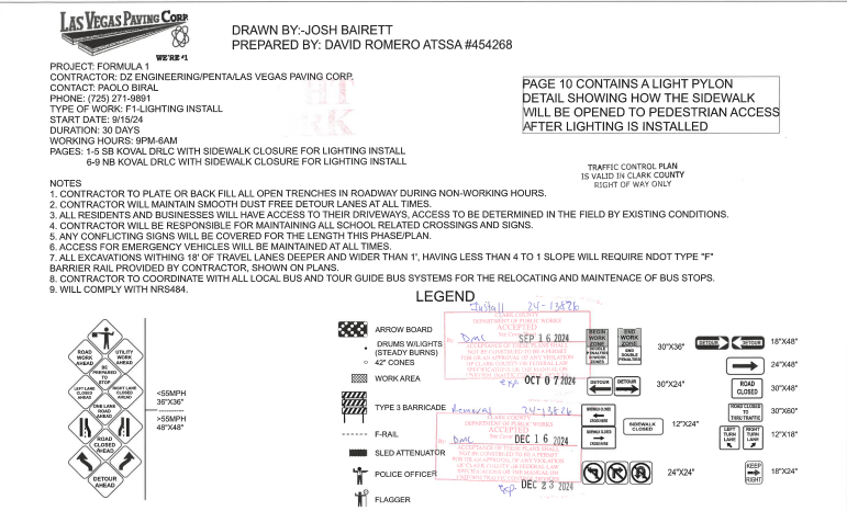 Formula 1 road work to install barriers, fencing and lights means closed lanes and roads based on this Las Vegas Grand Prix prep schedule.