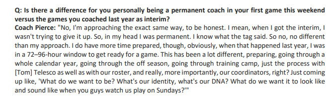 I’m approaching the exact same way, to be honest. I mean, when I got the interim, I wasn’t trying to give it up. So, in my head I was permanent. — Raiders coach Antonio Pierce on whether he has changed from being an interim to permanent coach.