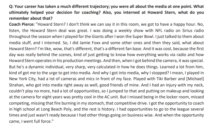 Did you know that Pierce was an intern for radio star Howard Stern. He was. AP’s mark Anderson asked Pierce about that gig: