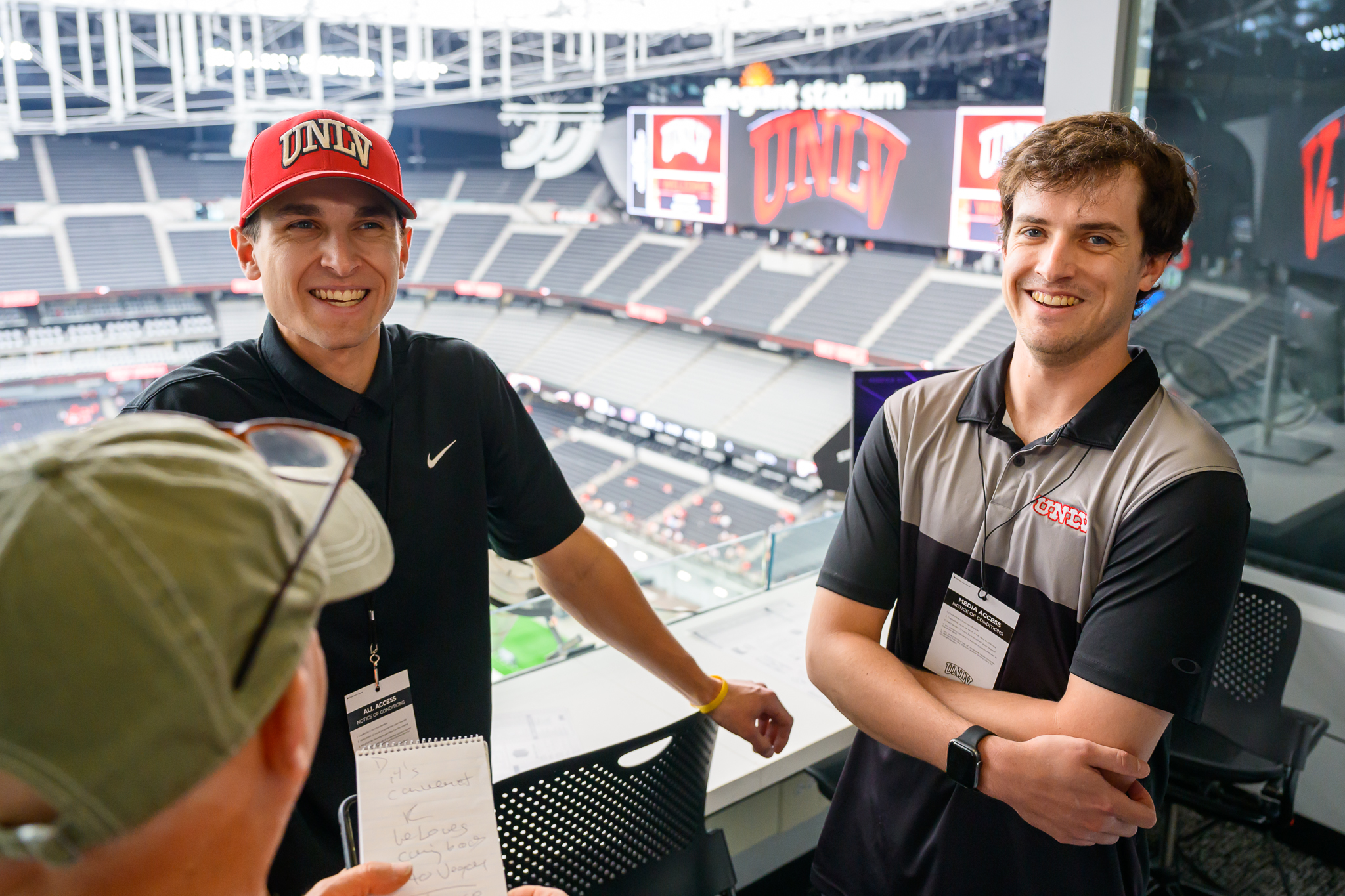 For example, while Matt was doing the UNLV football play-by-play Saturday, Kyle was working with him doing the spotting and helping his brother identify players involved in the action. In other cases, Drew and Matt worked together on UNLV baseball events.