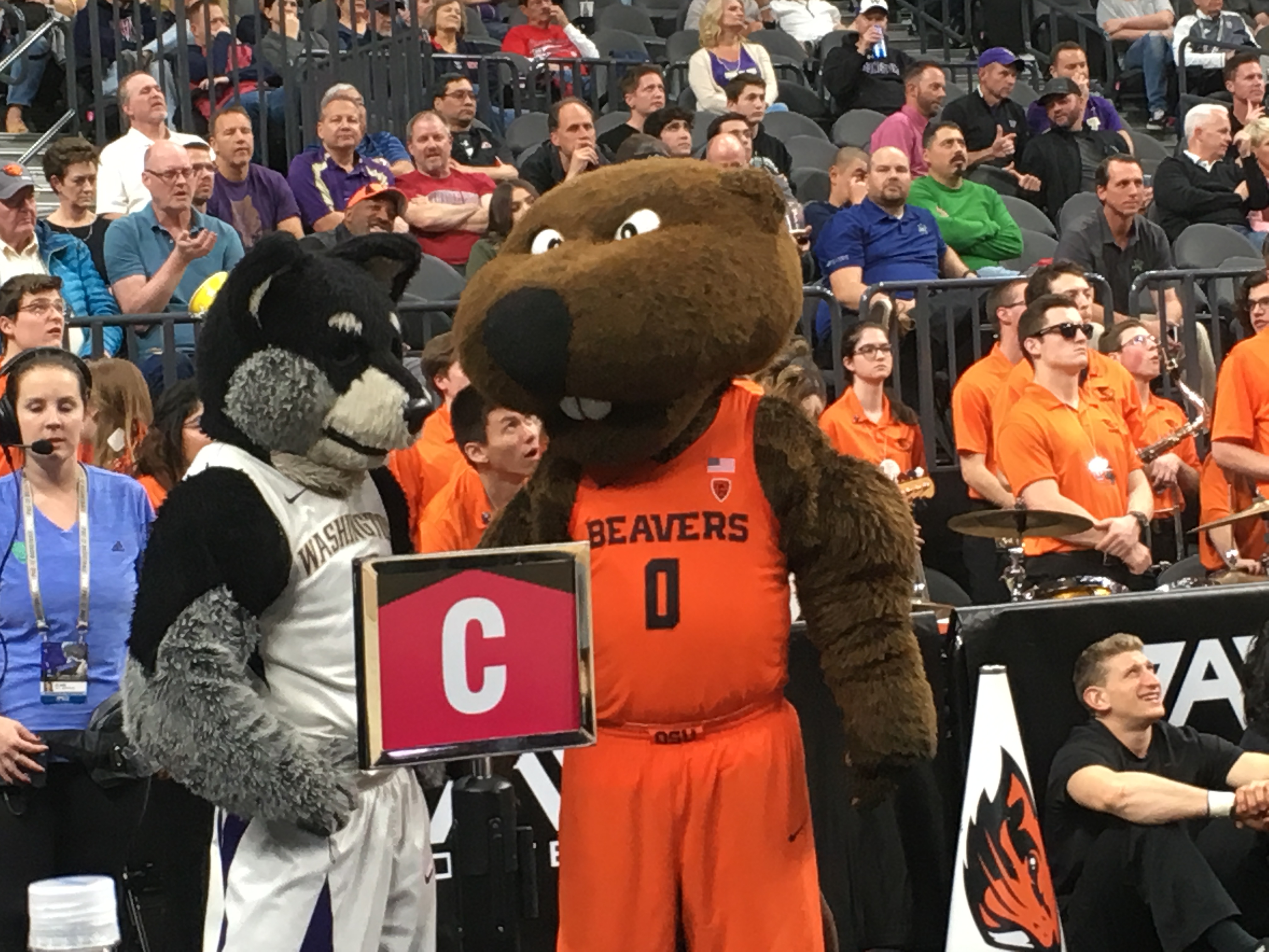 Conventional mascots meet at Wednesday night’s Oregon State-Washington game at T-Mobile Arena.