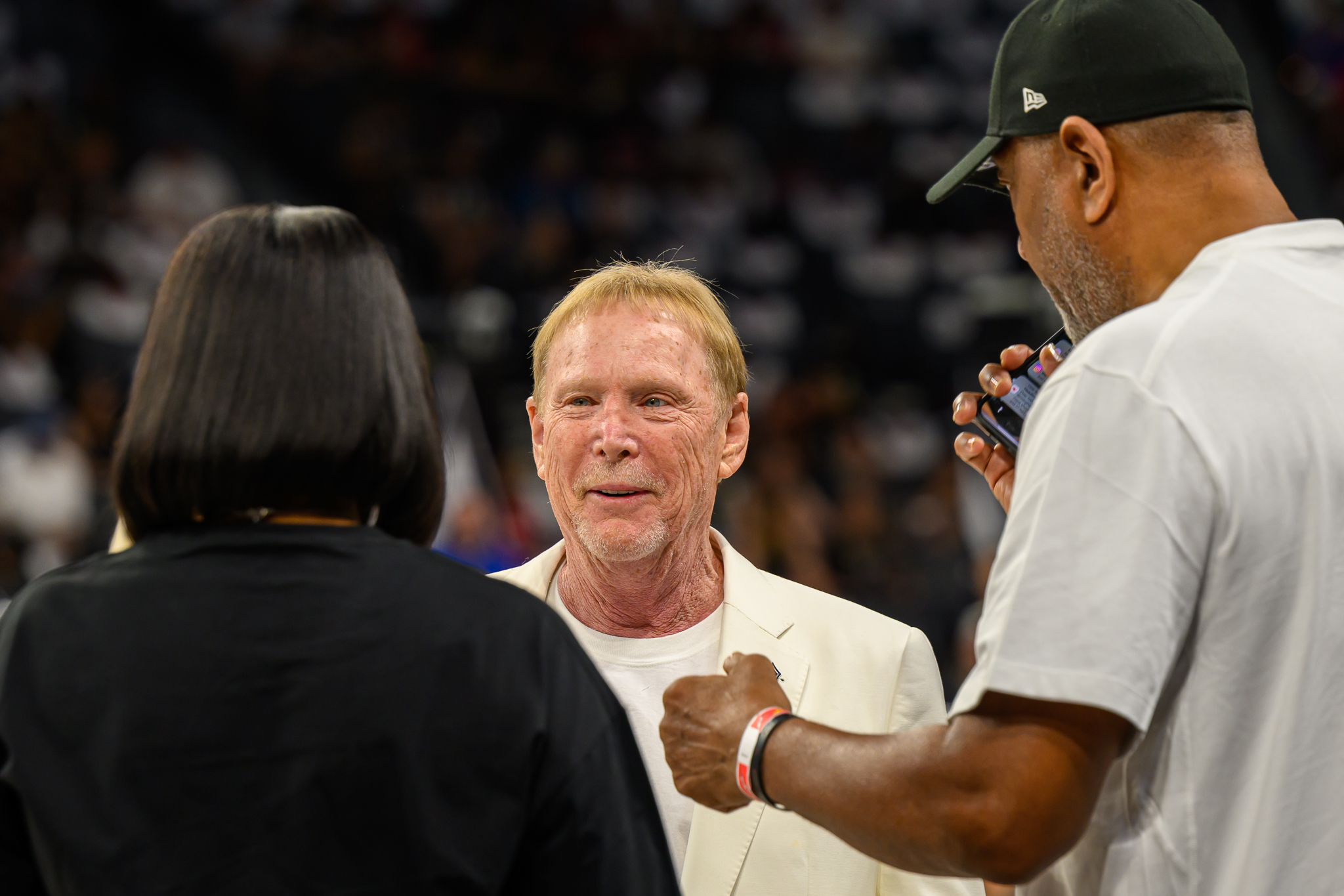 Raiders/Aces owner Mark Davis took his courtside seat to watch his Las Vegas Aces play the Seattle Storm in Game 1 of the WNBA playoffs after his NFL Las Vegas Raiders played lamely in a one-sided loss to the Carolina Panthers about three hours earlier.