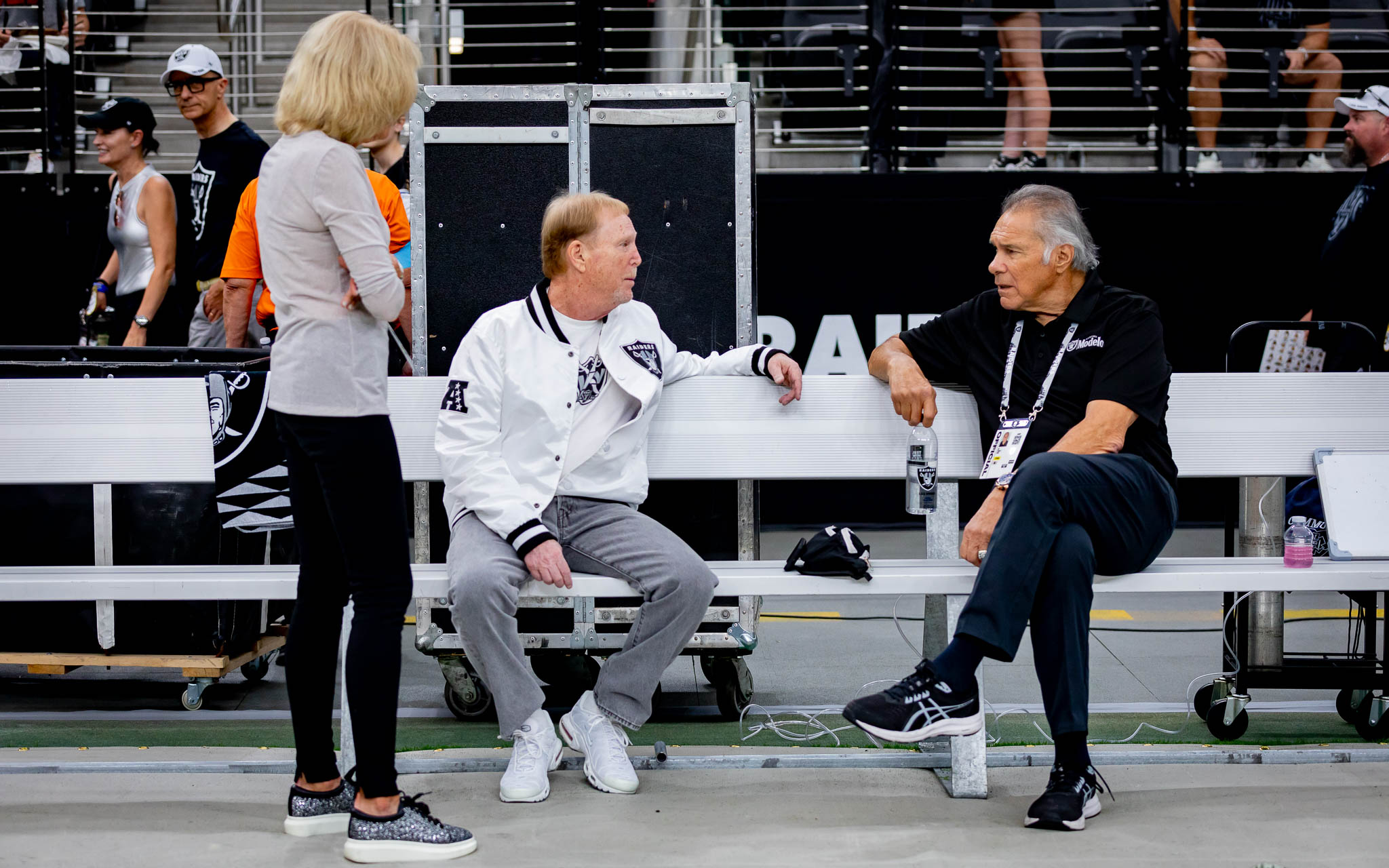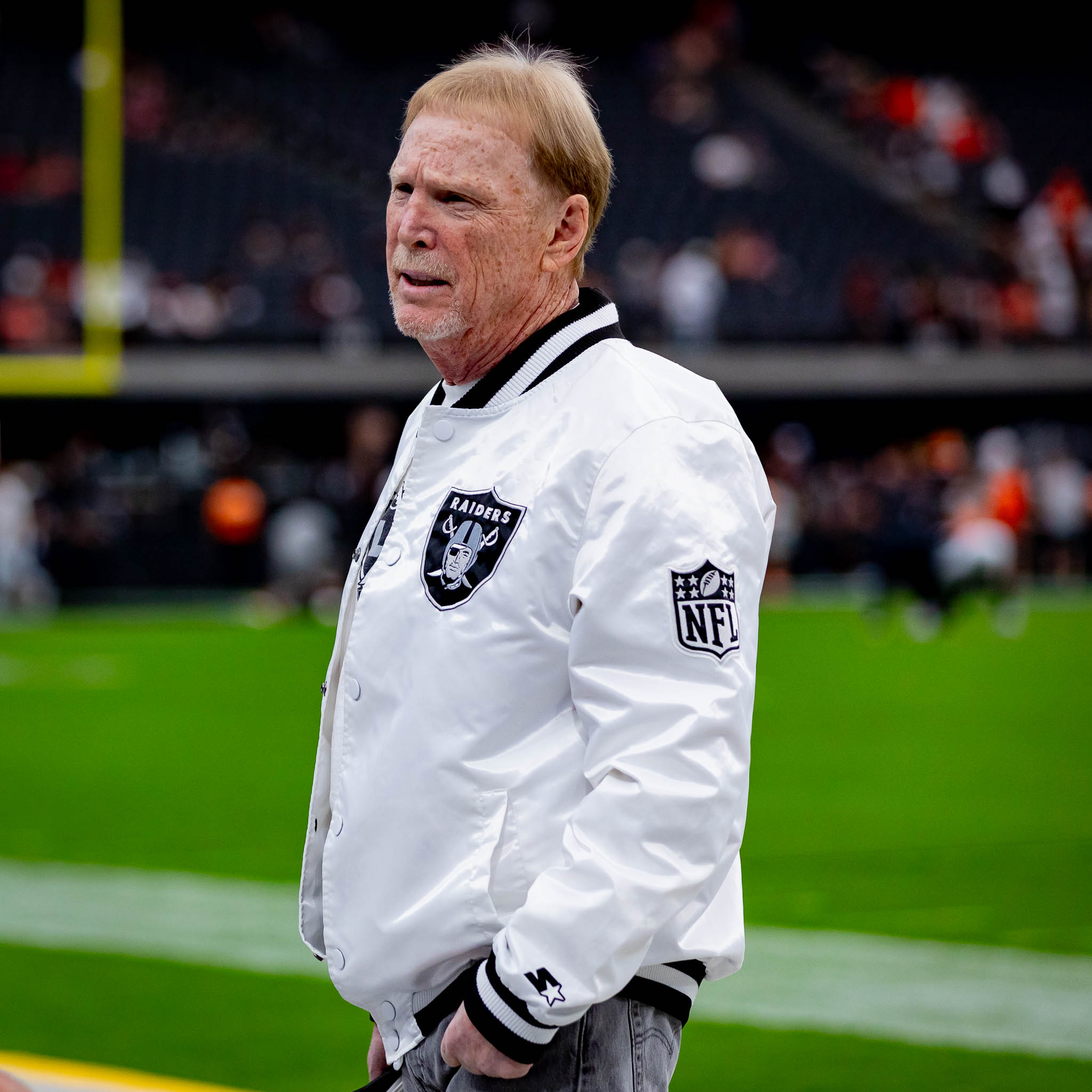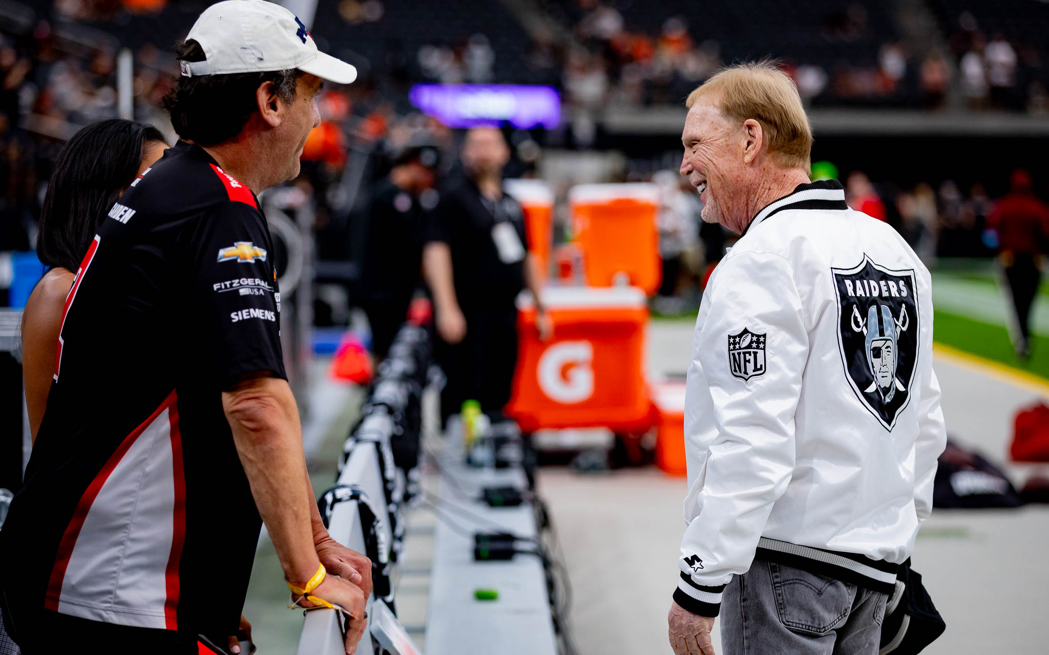 During pregame warmups and pleasantries, Raiders owner Mark Davis was seen watching video on his phone.