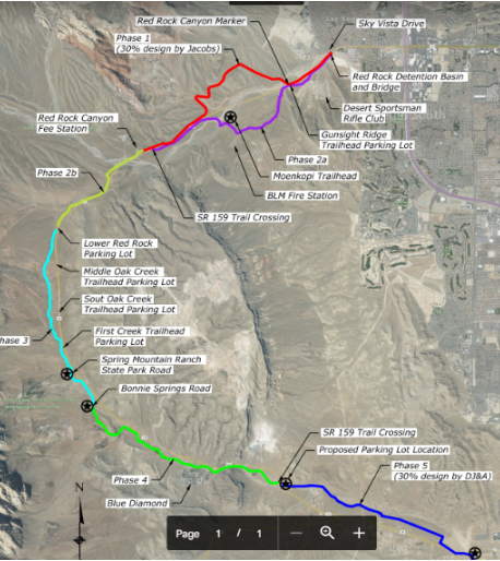 “In conjunction with Phase 1, Clark County will be constructing a trailhead parking lot adjacent to West Career and Tech Academy so that residents and visitors alike can park and access the multi-use trail. This project, and its future phases, has been a model for partnership between federal, state and local agencies and I am so excited to see it get under construction next year,” Jones said.