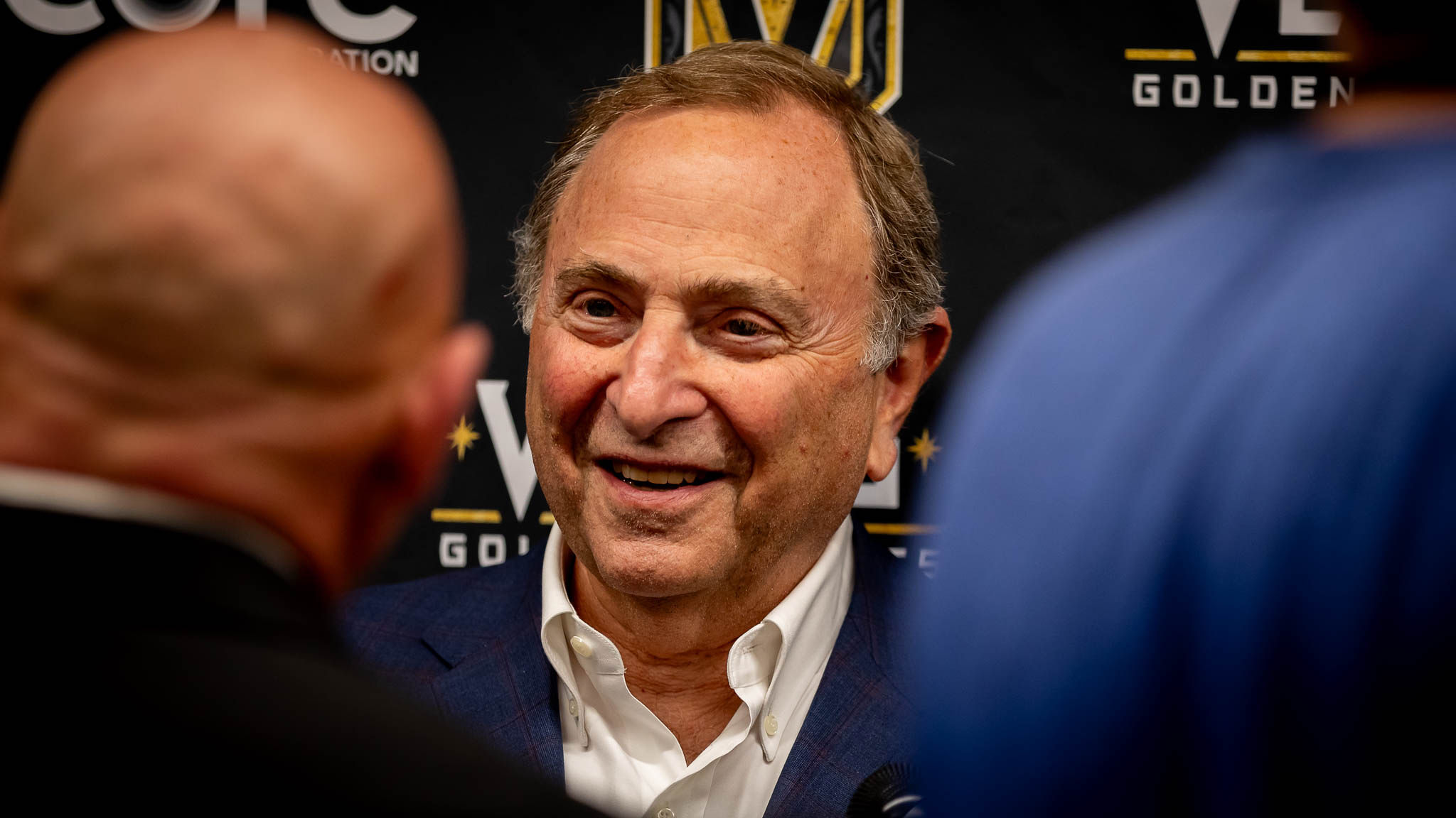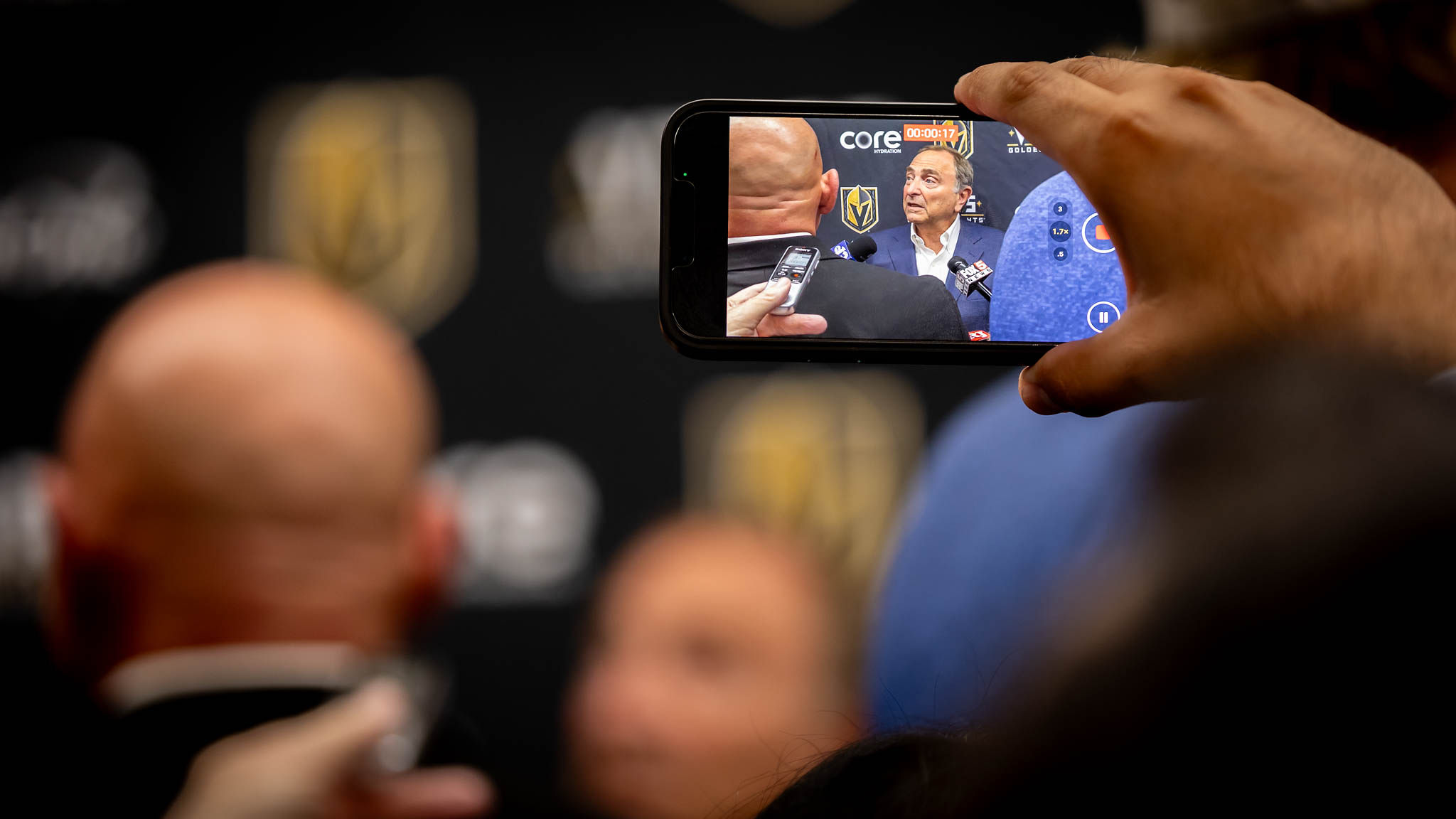 About 40 minutes before puck, Bettman met the media. He was in a chipper, upbeat mood. You never know with Bettman, the Cornell man who sometimes can be a dour or even surly mood at times. Bettman loves Las Vegas, but is diplomatically savvy enough to say “I love all my children equally” when asked about VGK setting the pace in the National Hockey League.