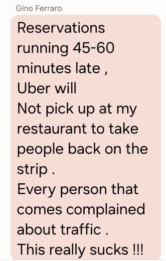 Restaurant owner Gino Ferraro recently sent this text to a contact about the F1 race’s impact:
