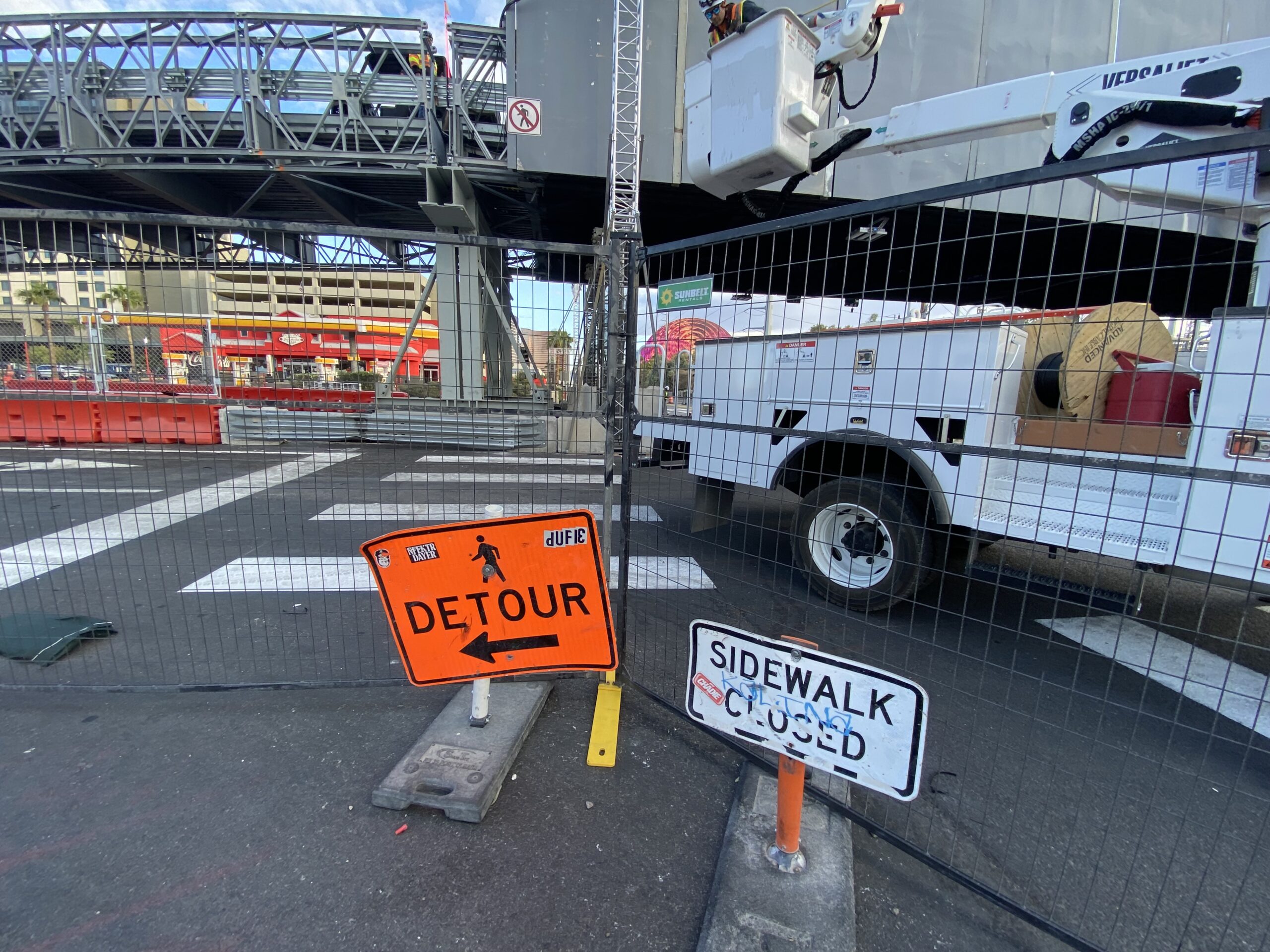 The Las Vegas Grand Prix was still more than a month away when workers closed the busy Flamingo Road-Koval Lane intersection just east of the Strip starting Oct. 13 for seven days to install a temporary bridge on Flamingo Road that spans Koval Lane. The intersection did not re-open until Saturday.