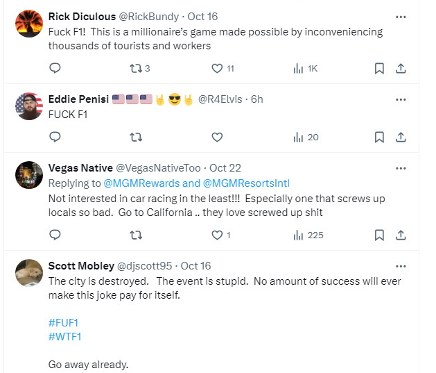 The F1 race has enraged many Las Vegas locals and Strip workers.