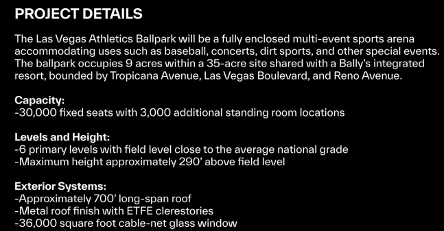 The A’s will play the next three seasons in a minor league stadium in Sacramento while the Vegas ballpark is built on a nine-acre footprint at the southeast corner of Tropicana Avenue and Las Vegas Boulevard.