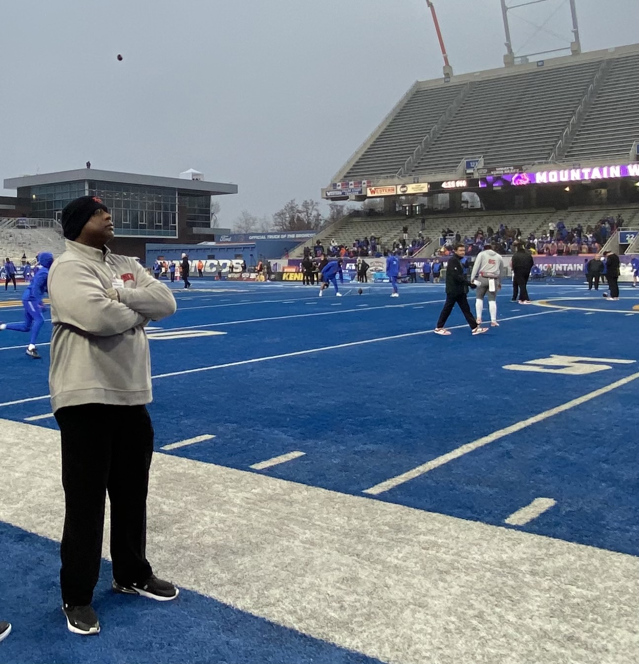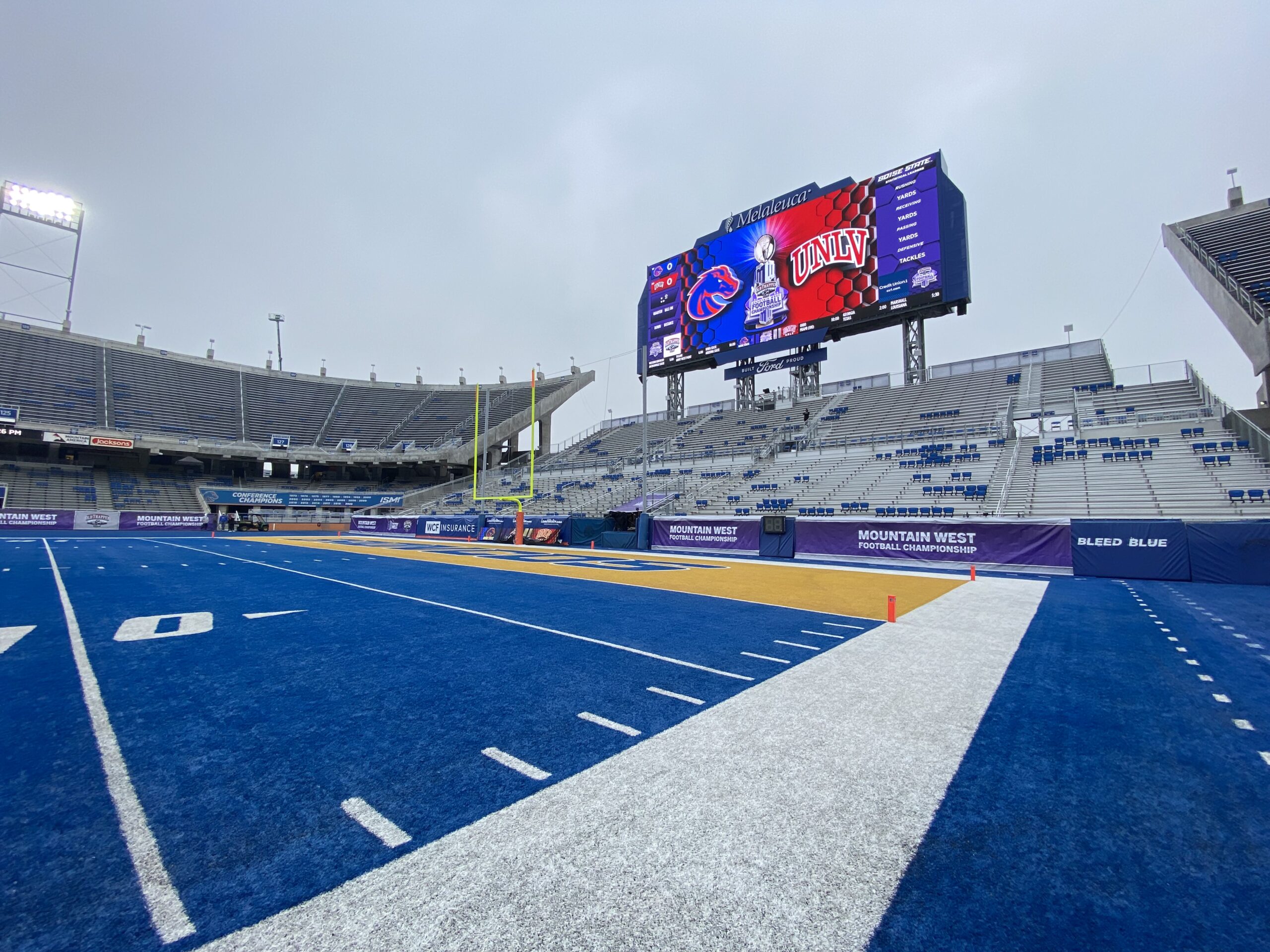 It was cold at 25 degrees inside the college football stadium at the edge of the Boise State campus and a UNLV equipment worker was running a communications cable behind the UNLV football bench Friday afternoon.