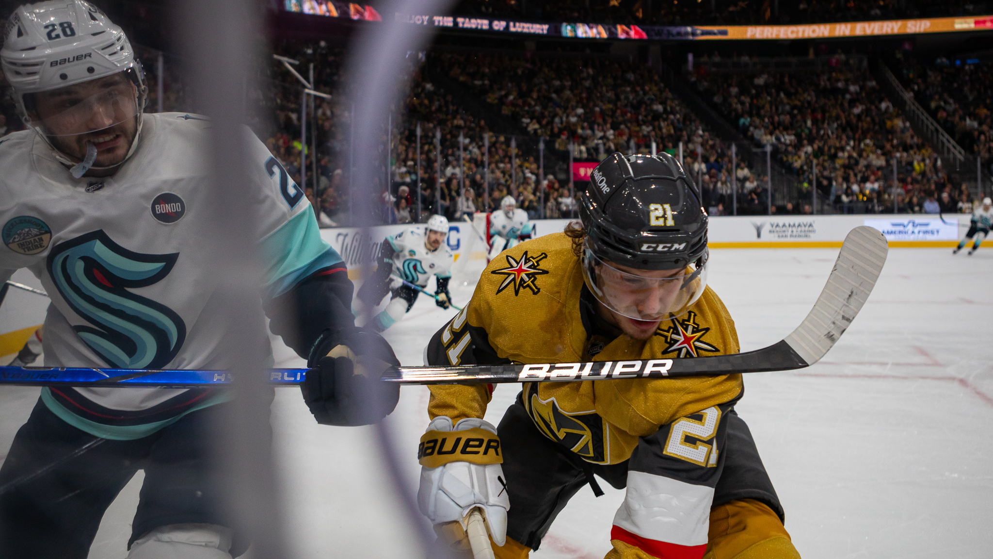 Then the Knights’ assist king, Jack Eichel, lifted the stick of Seattle defenseman Vince Dunn and fed winger Brett Howden who scored his 13th of the season and the Knights led, 2-1, in the first.