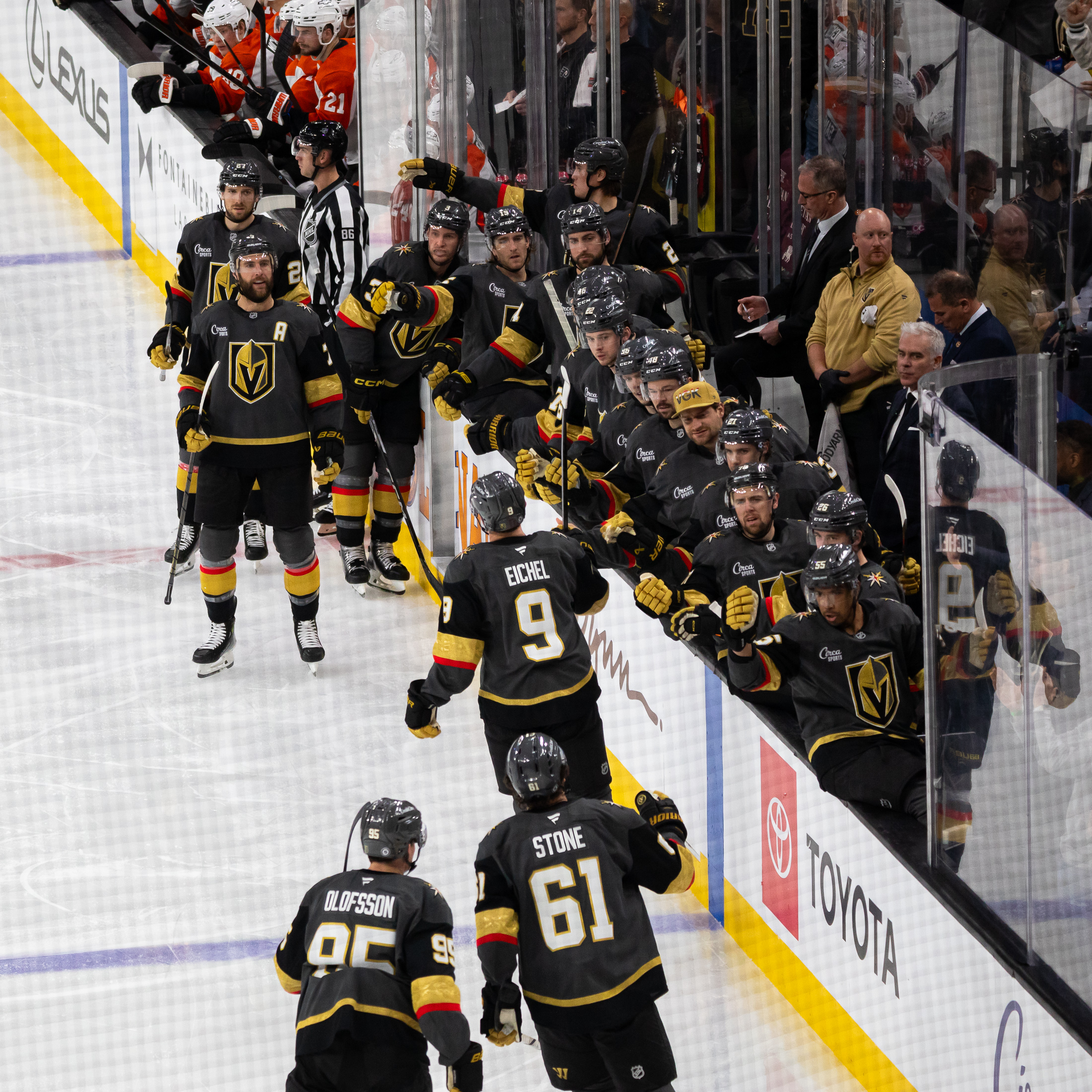 VGK responded with four consecutive goals in the second period into the third period before an announced crowd of 17,909 and took a 4-1 lead en route to a 5-2 win over the Flyers.