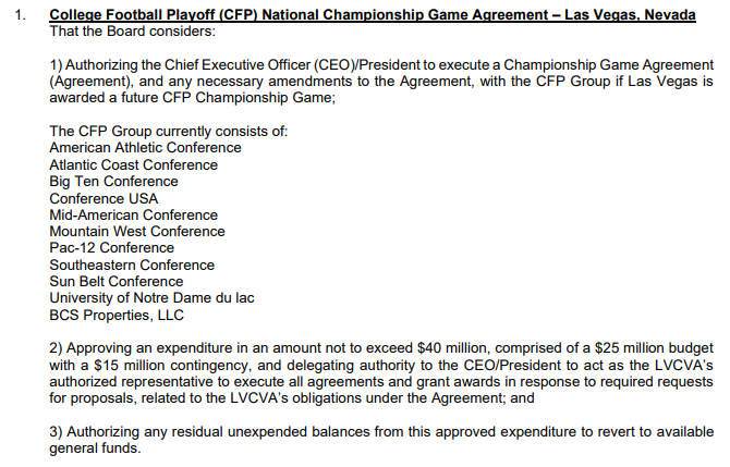 The Las Vegas Convention and Visitors Authority (LVCVA) have $40 million at the public tourism agency’s disposal to spend on college football’s national championship game in Jan. 2027.
