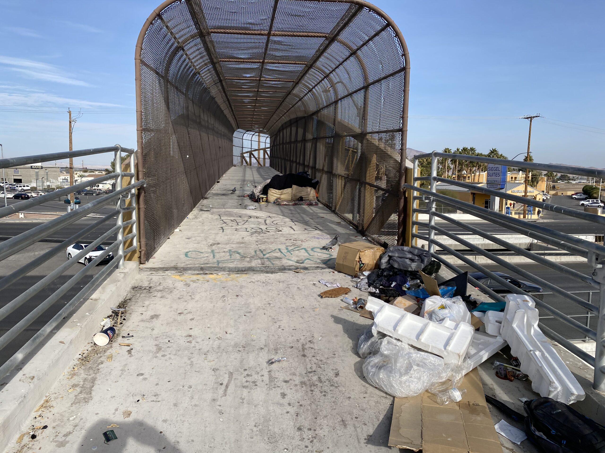 People living on the streets, on pedestrian bridges and along flood control channels painted a different picture than the LVCVA ads trumpeting the Strip.