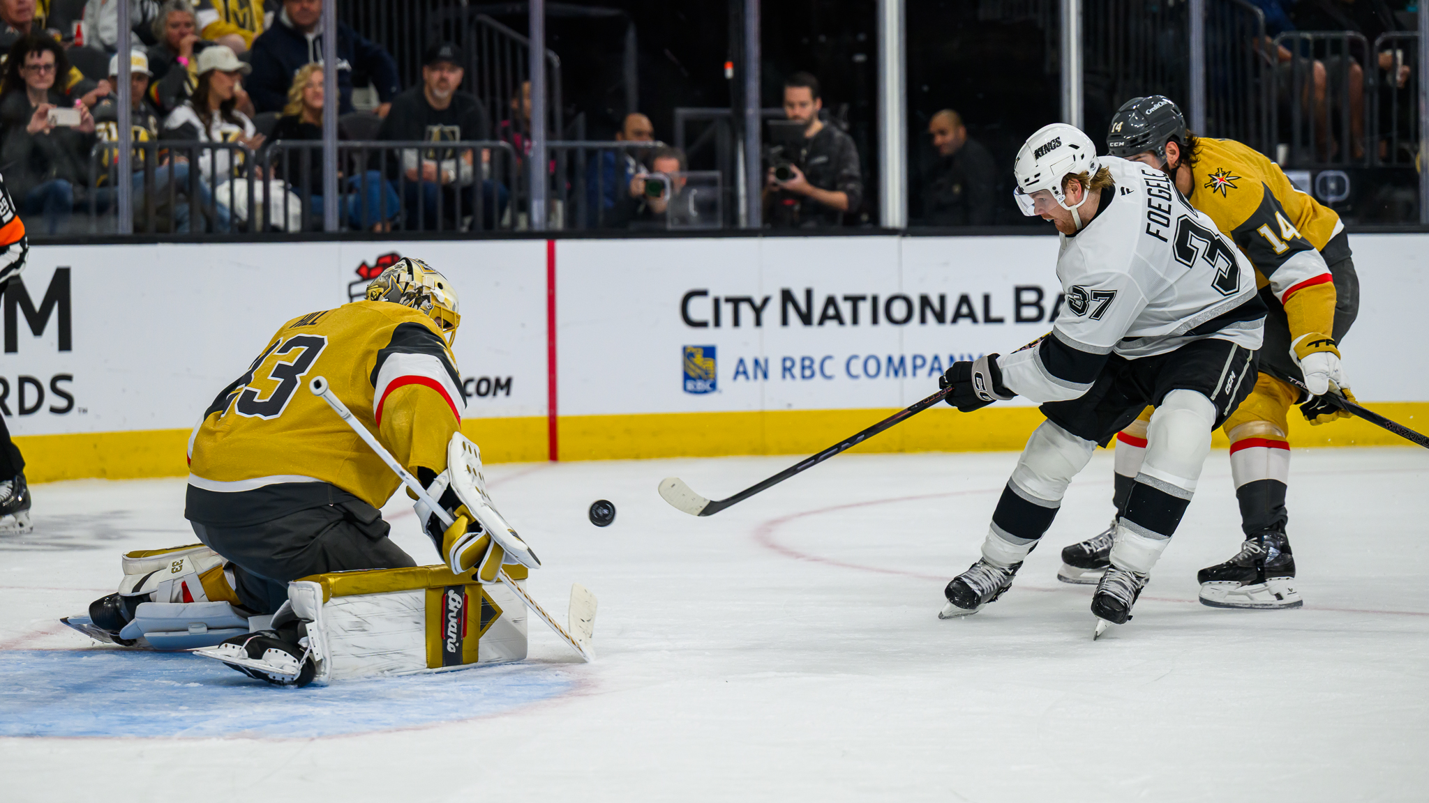 But the VGK let the Kings get a two-goal lead with about a minute left in the period after Vegas defenseman Alex Pietrangelo showed some sloppy defensive play. Warren Foegele scored his 18th after breaking in on Knights goalie Adin Hill and the Kings led, 4-2, after two periods.