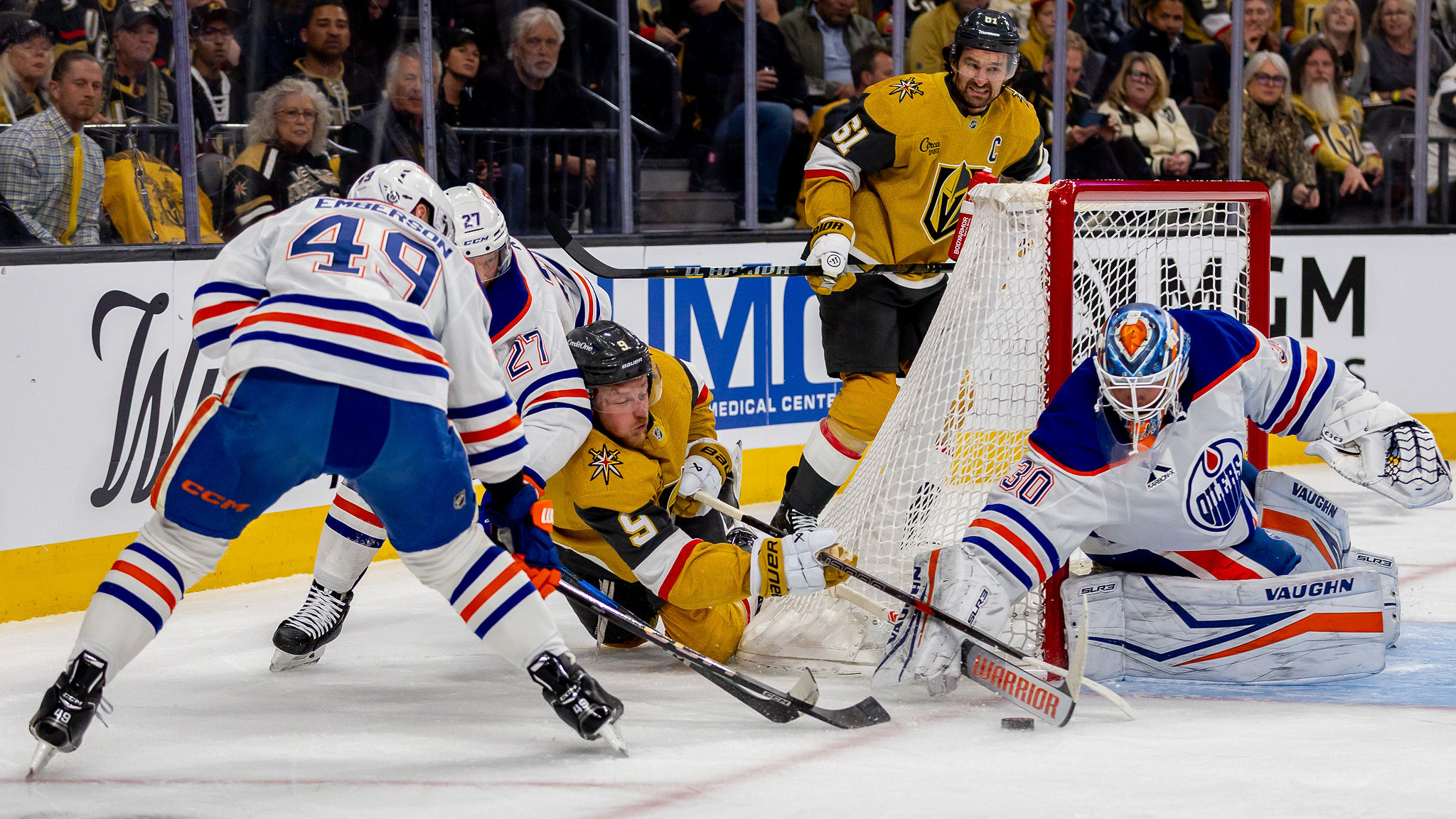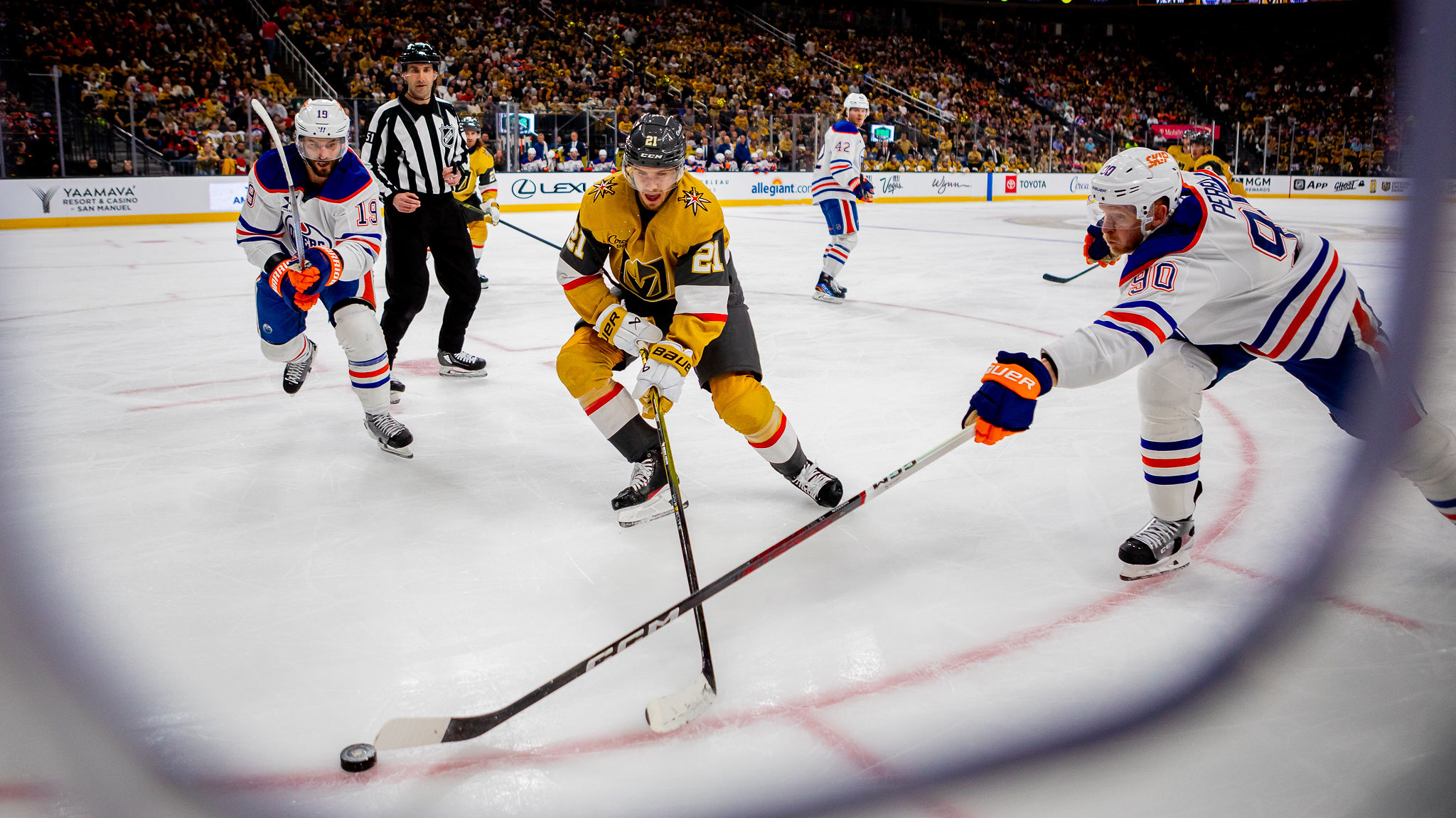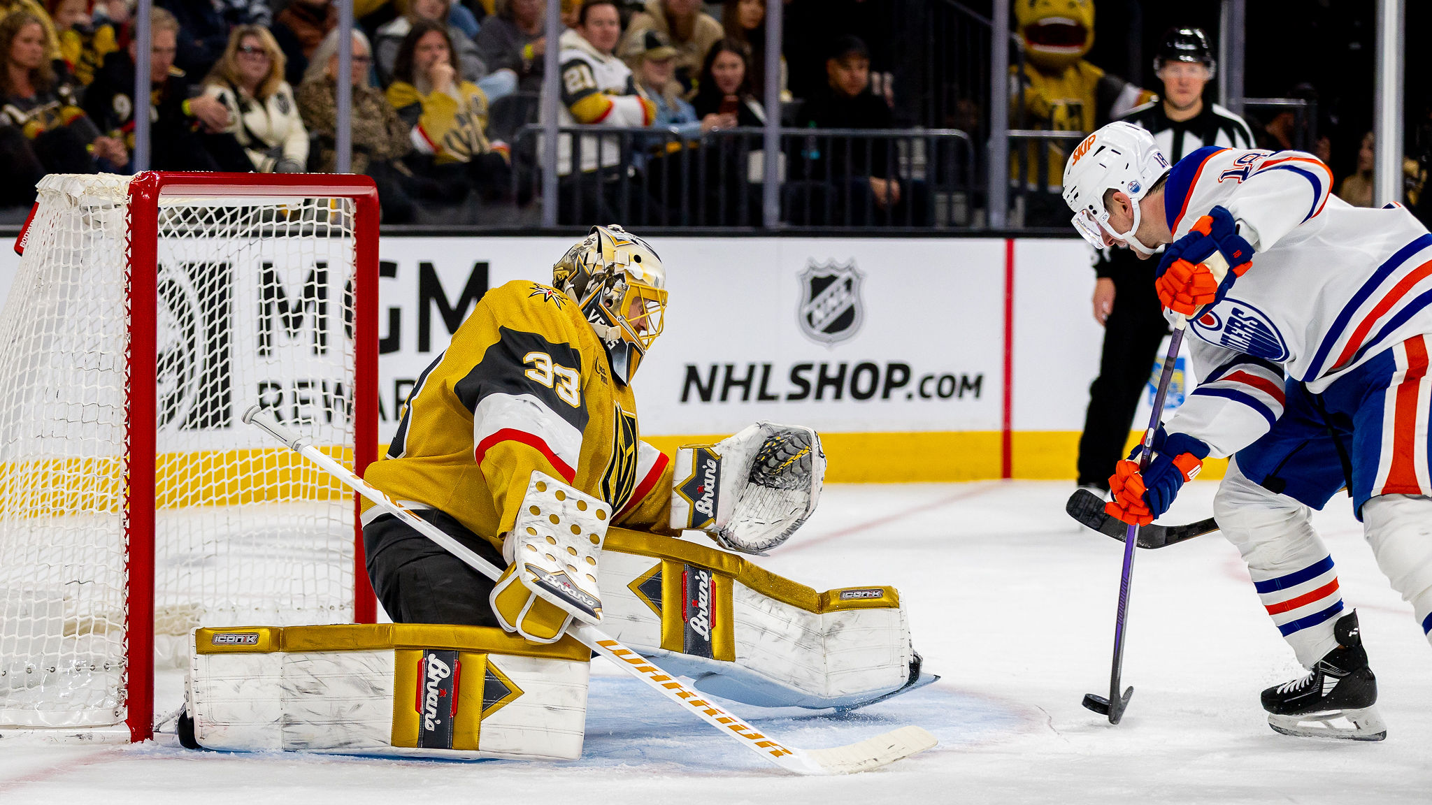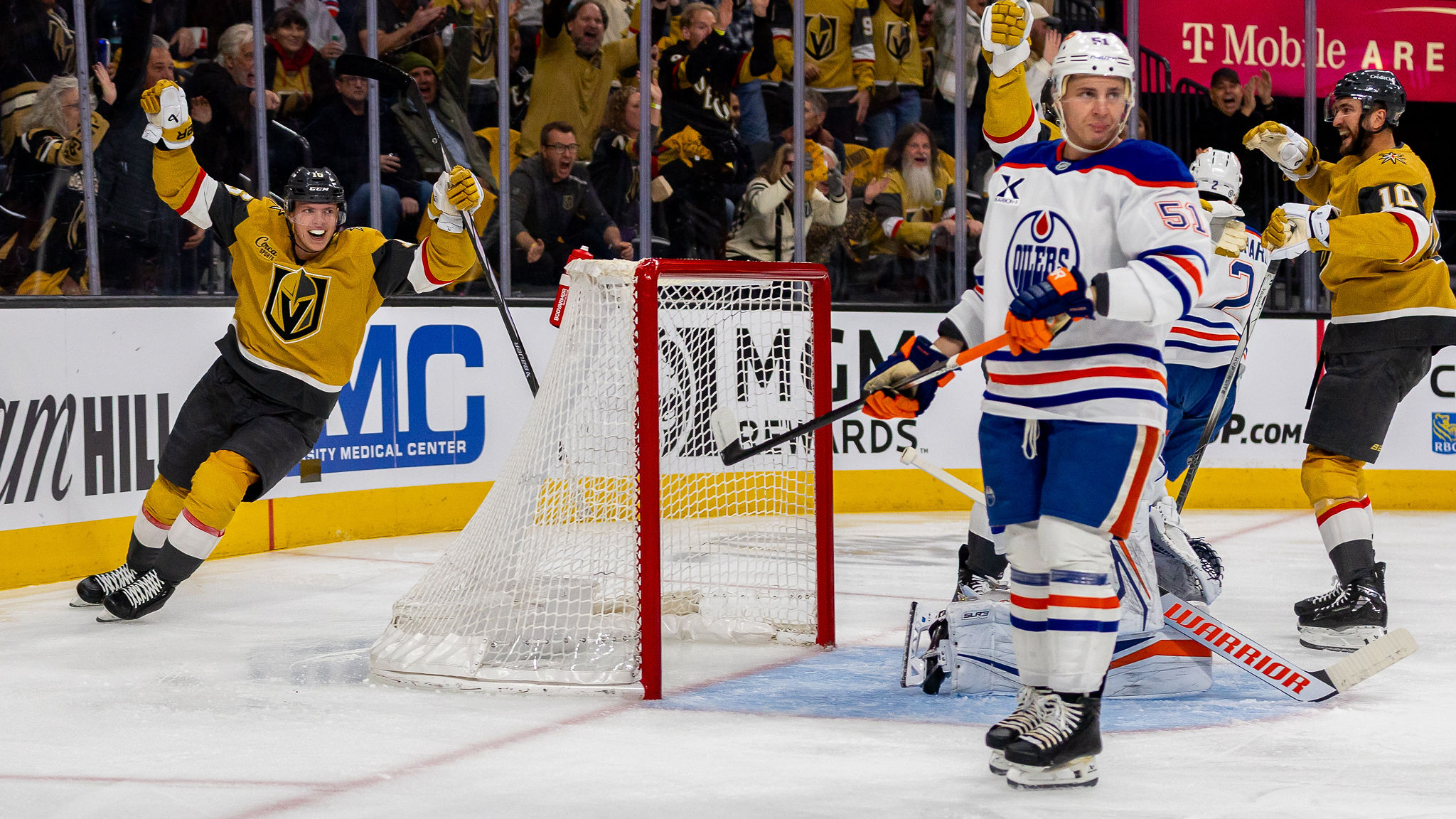 The Knights outplayed Edmonton in period one, outshooting the Oilers, 10-4, but led only, 1-0, after one period. Vegas top scorer Jack Eichel hit the post in period one before Edmonton seized the momentum in period two.