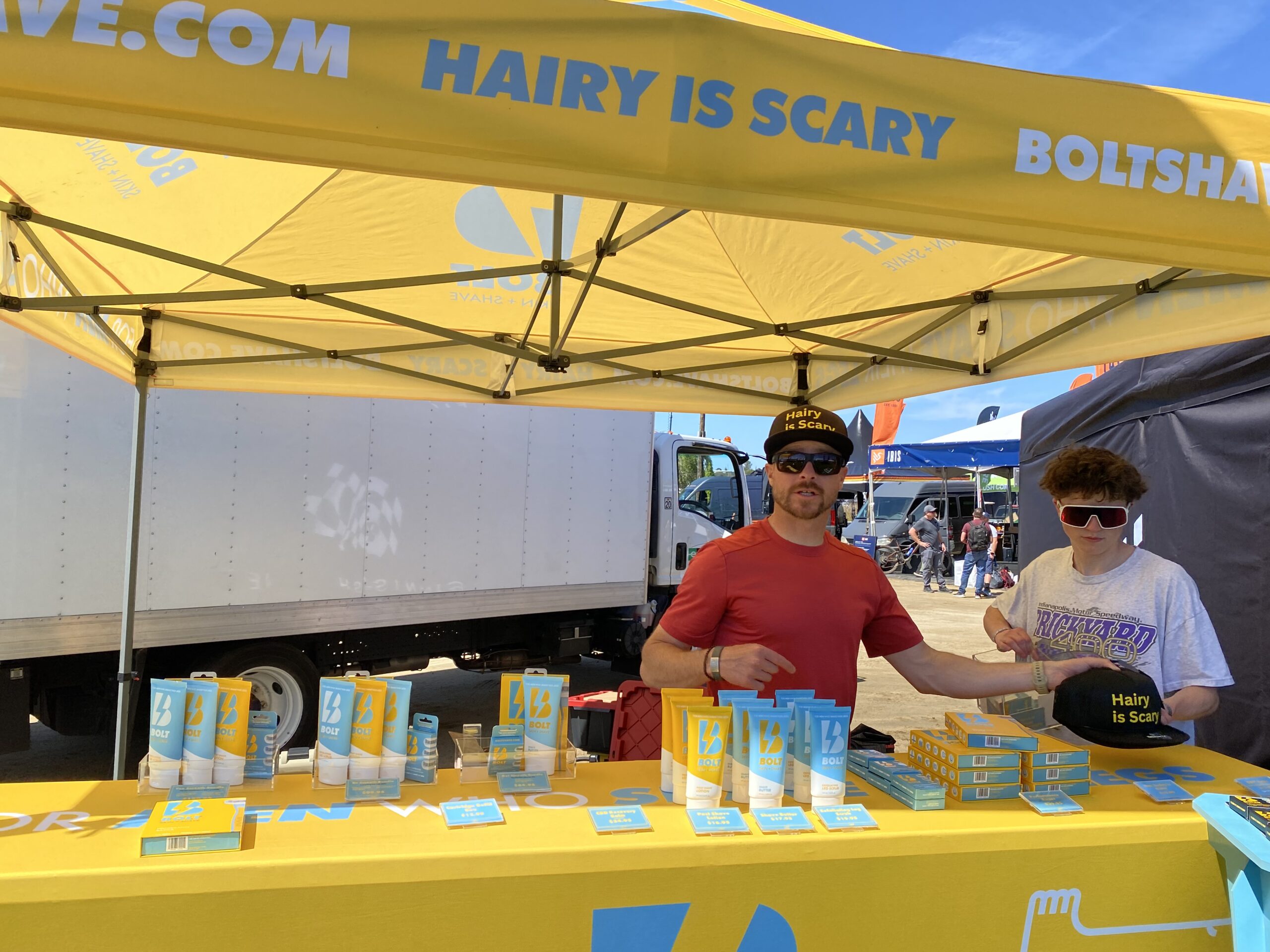 The big names like Giant and Sram are here and even young ones like a guy selling a special razor for dudes who shave their legs before bike rides. He launched BOLT Skin+Shave at last year’s Sea Otter. It’s like the massive CES show in Las Vegas in that the exhibitors range from well-known brands to newbie entrepreneurs.
