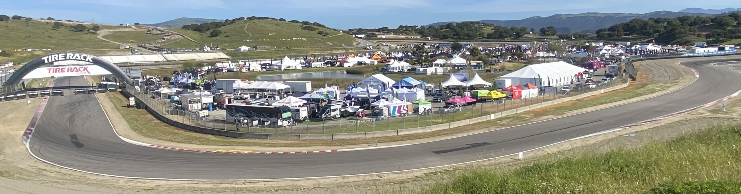 The weather is glorious today at the car race track that gets converted into a mecca of bike culture and bicycle industry exhibitors on the green hills between Monterey and the ocean to the west and Salinas and the valley farms to the east.