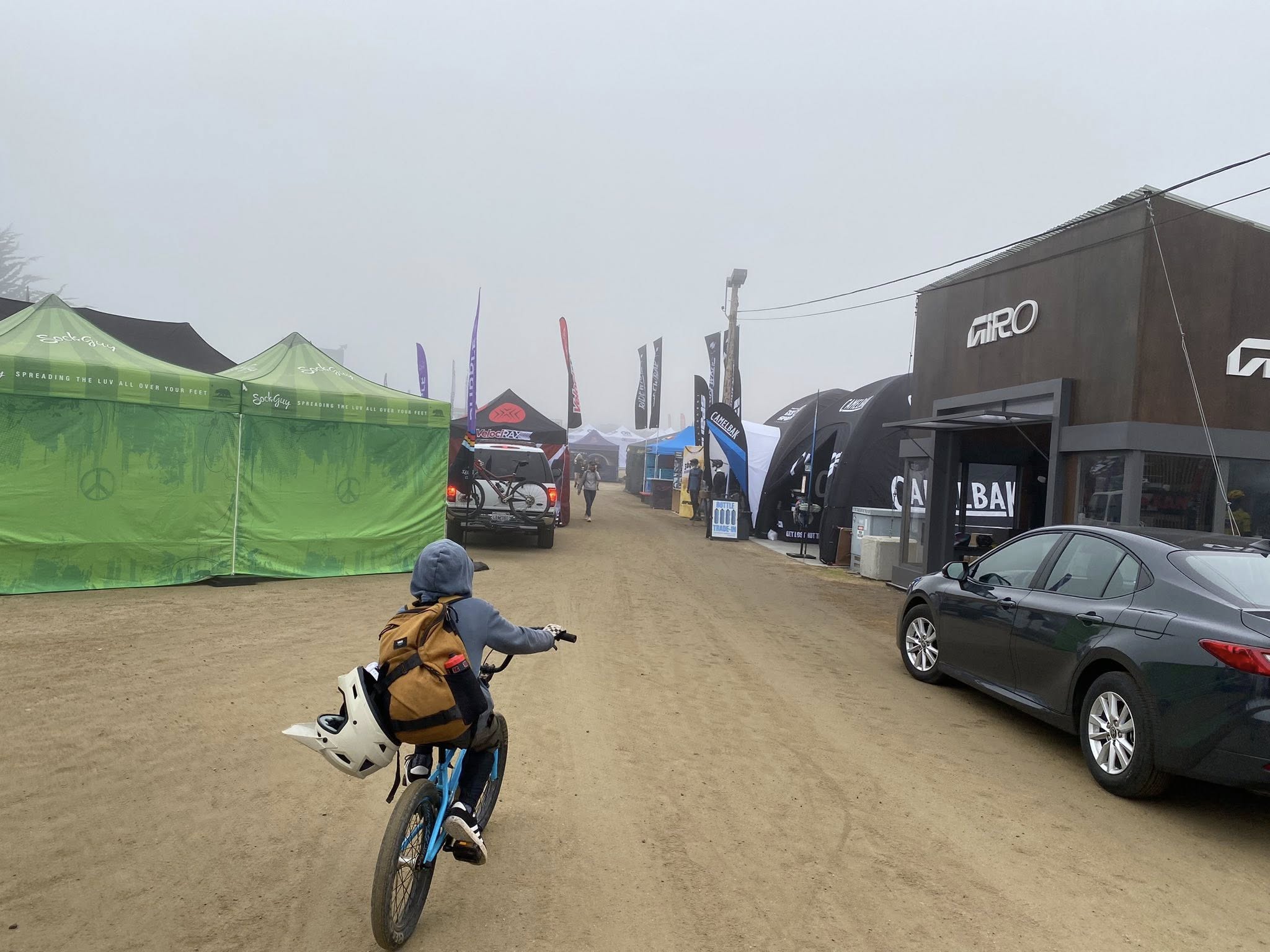 The media room was going to open at 7AM, so I strolled to the hundreds of exhibitors that set up shop in the hilly terrain off the ocean and Monterey Bay. The light was sweet as I looked at the downhill mountain biking course.