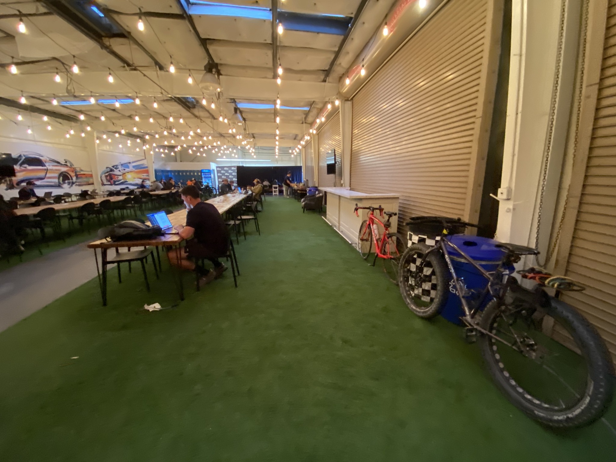 By 9:45 AM the soupy Seattle weather was gone and I ventured out on my Pugsley. That’s the beautiful thing of covering this event — I bring my bicycles right into the media center and nobody bats an eye or touches the bike. That’s the code.