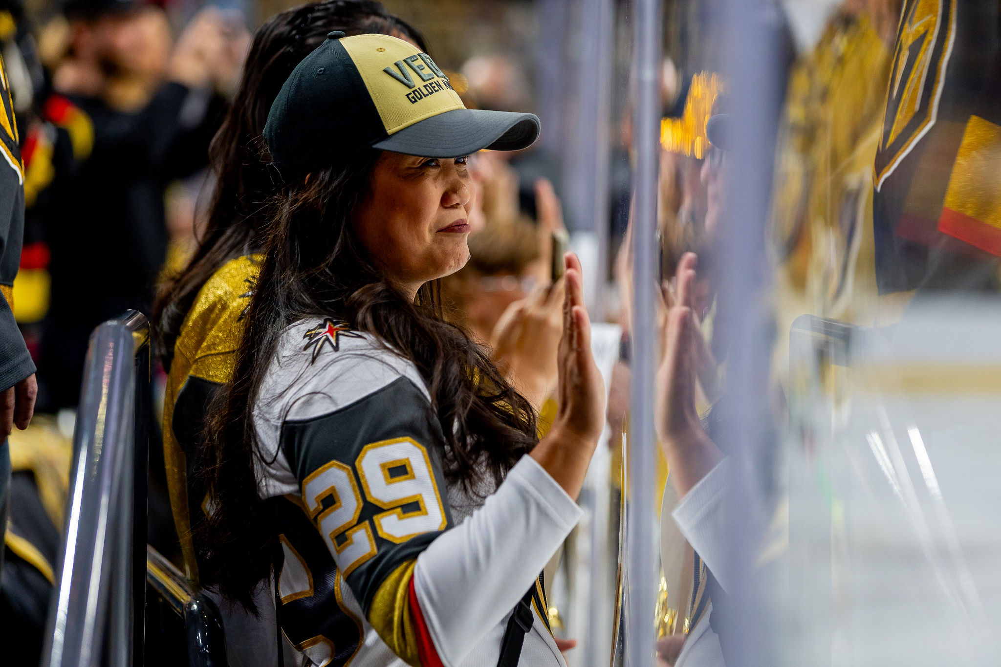 The number of fixed seats for Golden Knights games is 17,367, but there are several standing room areas like the Flight Deck and Hyde Lounge and along counters behind the top row of the arena’s upper bowl.