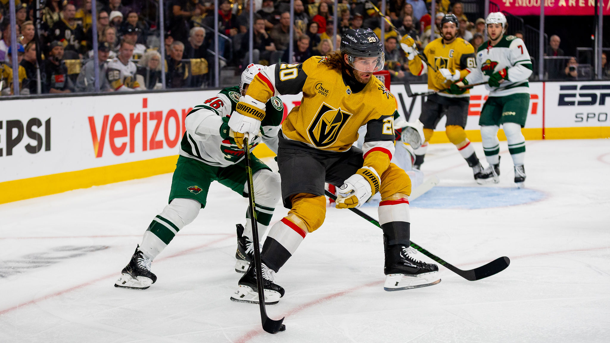 But the game pivoted in the third period when the Wild scored when Minnesota scoring star Matt Boldy sped around Vegas defenseman Alex Pietrangelo, powered his way to get in front of VGK goalie Adin Hill and scored the tying goal in the final stanza to tie the game in front of a big announced crowd of 18,441 Tuesday night.