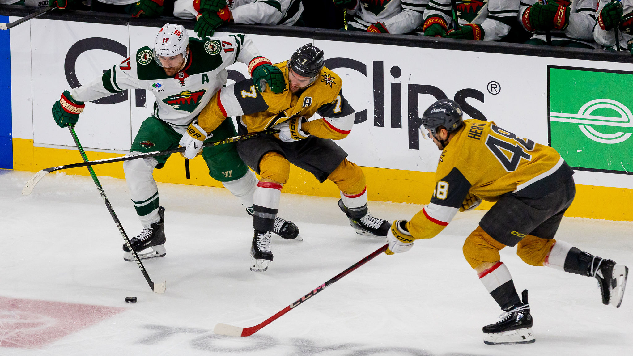 The Knights applied the pressure throughout the period, peppering Minnesota goalie Filip Gustavsson with 16 shots on goal.