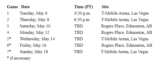 NHL Releases VGK-Edmonton Playoff Round 2 Schedule; Knights Open Series In Vegas Tuesday, Thursday For Games 1 And 2