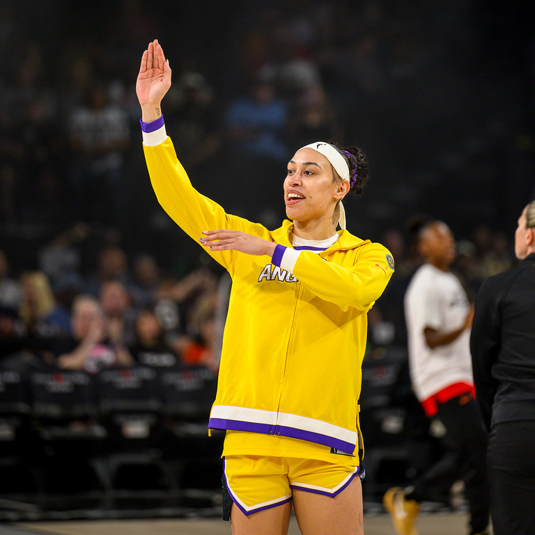 Plum stepped onto the court in Las Vegas for the first time since being traded to Los Angeles in a blockbuster three-team deal that sent Jewell Loyd from Seattle to the Aces earlier this year.