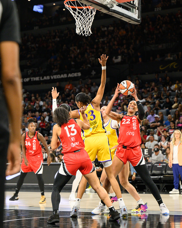 The Aces went on a 15-3 run in the second period to open a 54-36 lead. They led by as much as 24 points in front of the loud home crowd.