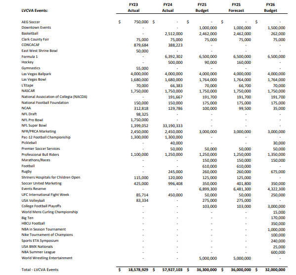 Take a look at this LVCVA chart on events that the agency spends money on sponsoring. It’s tens of millions of dollars a year: